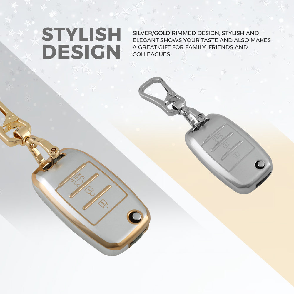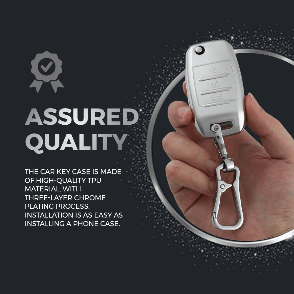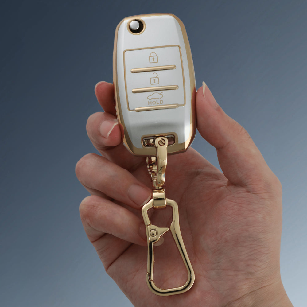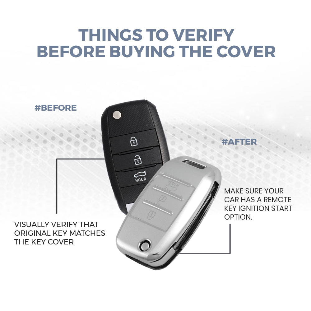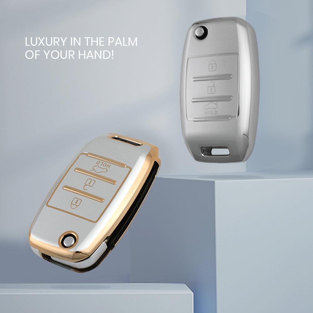 Keyzone DTPU key cover & alloy keychain for Seltos, Sonet, Carens 3 Button Flip key (DTP35, DAlloy)