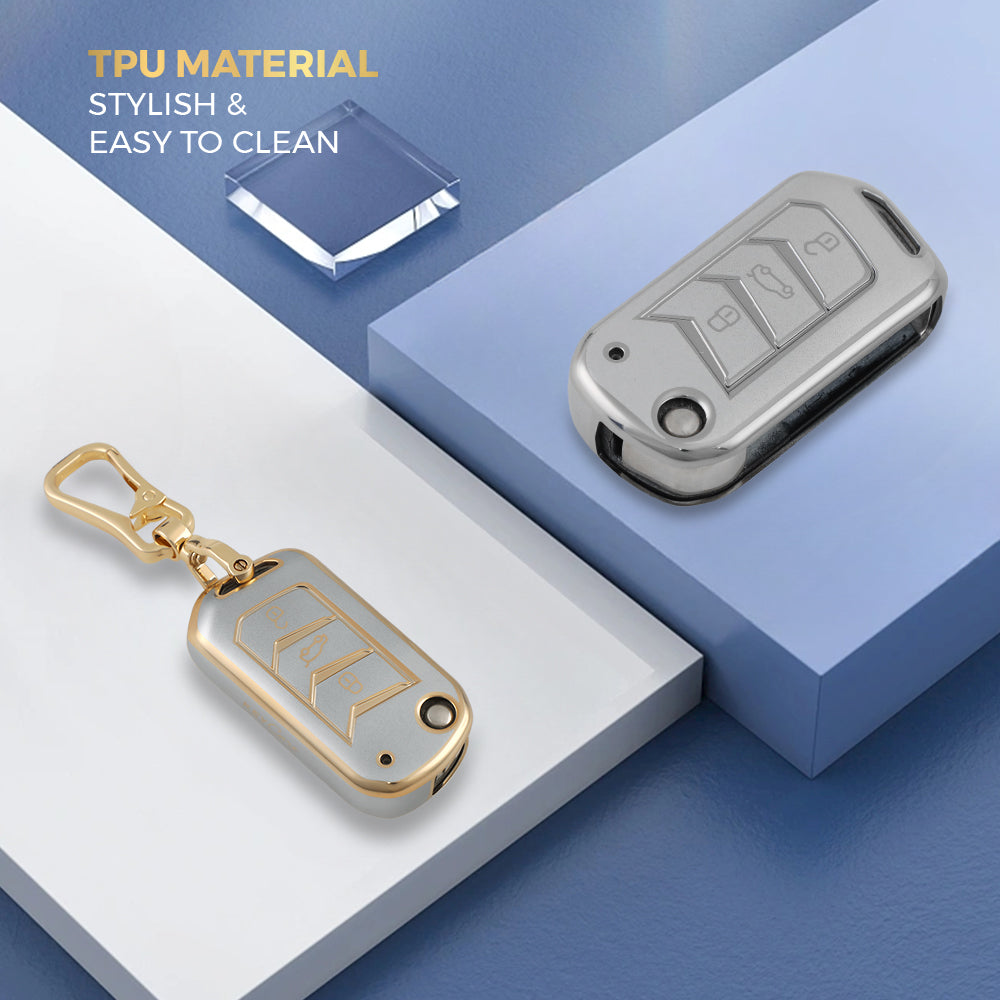 Keyzone DTPU key cover & alloy keychain for Thar, Scorpio, Bolero, XUV700, XUV400, XUV3XO, XUV300, TUV300, Marazzo flip key (DTP09, DAlloy)