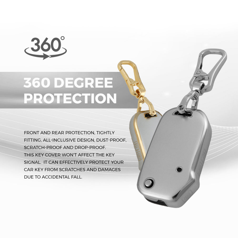 Keyzone DTPU key cover & keychain for for for Seltos, Sonet, Carens, Carens Clavis 3 button flip key (DTP78, DAlloy)