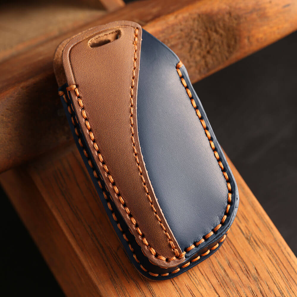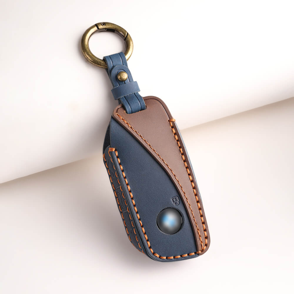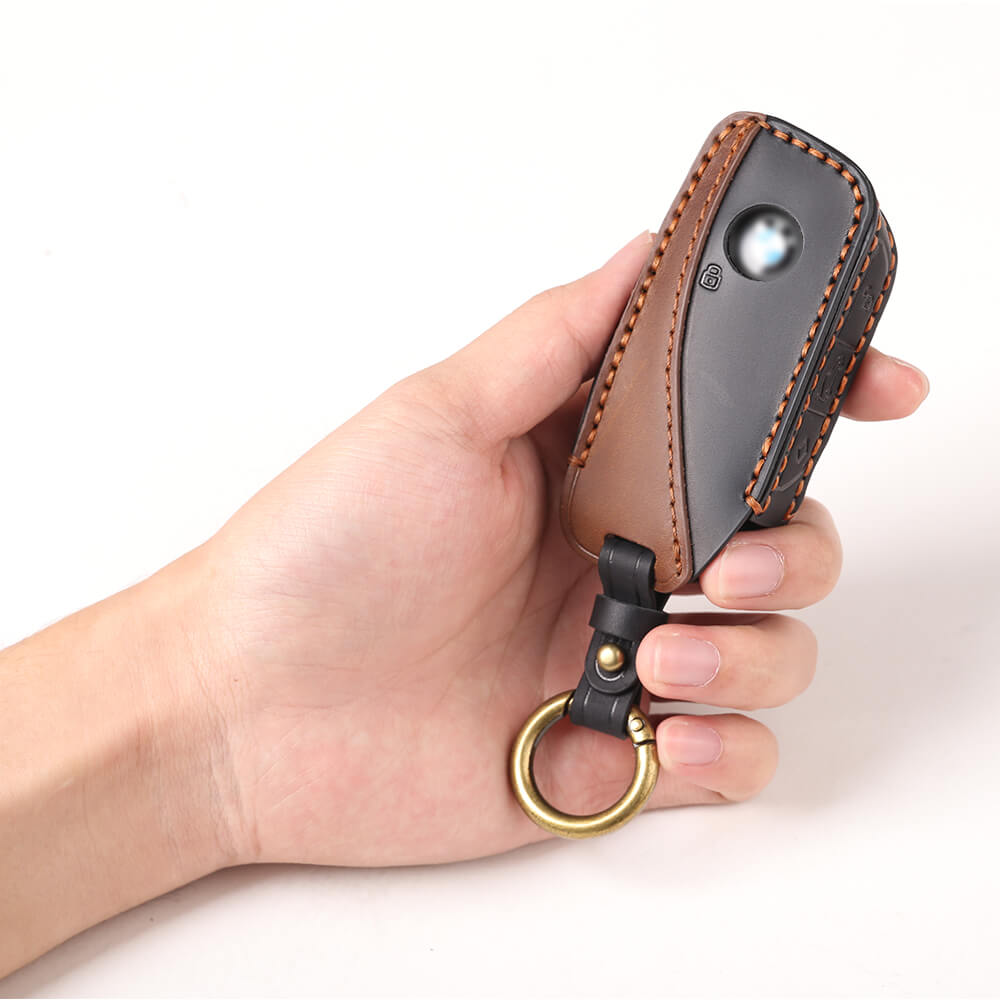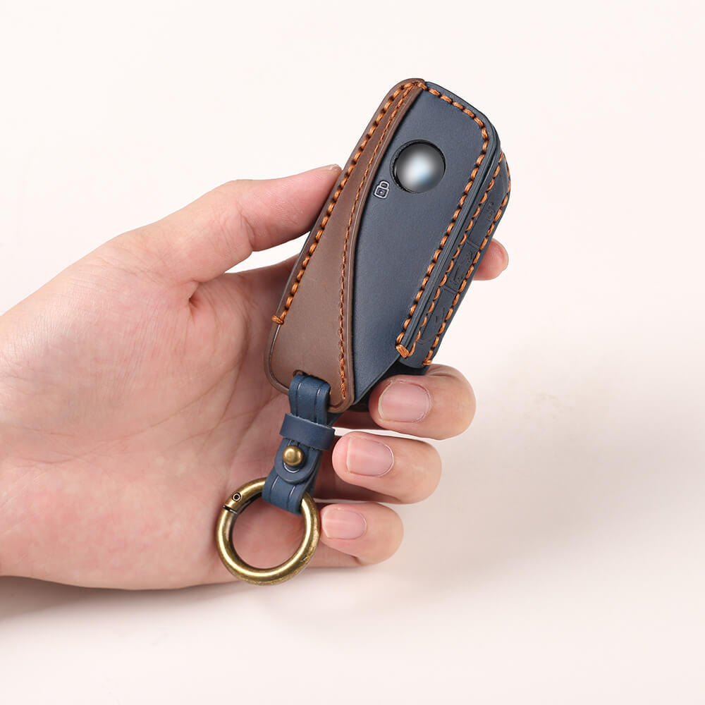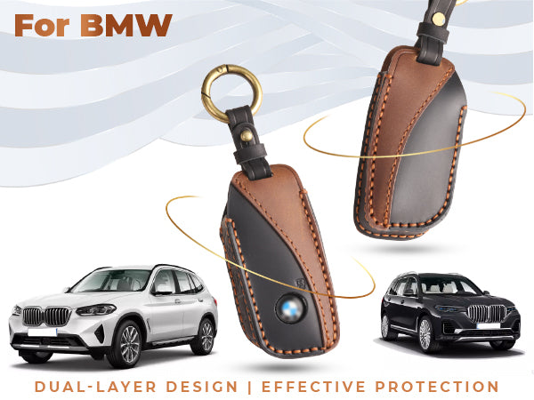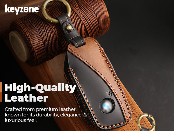 Keyzone dual leather key cover for BMW 2023 New 7 Series 740i 760i X1 X7 XM IX I7, X5 smart key (KDL_BMW2023)
