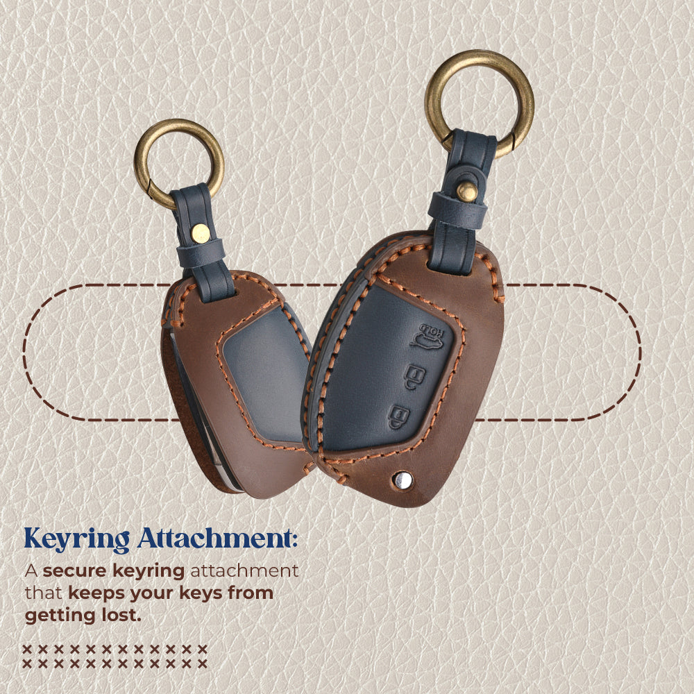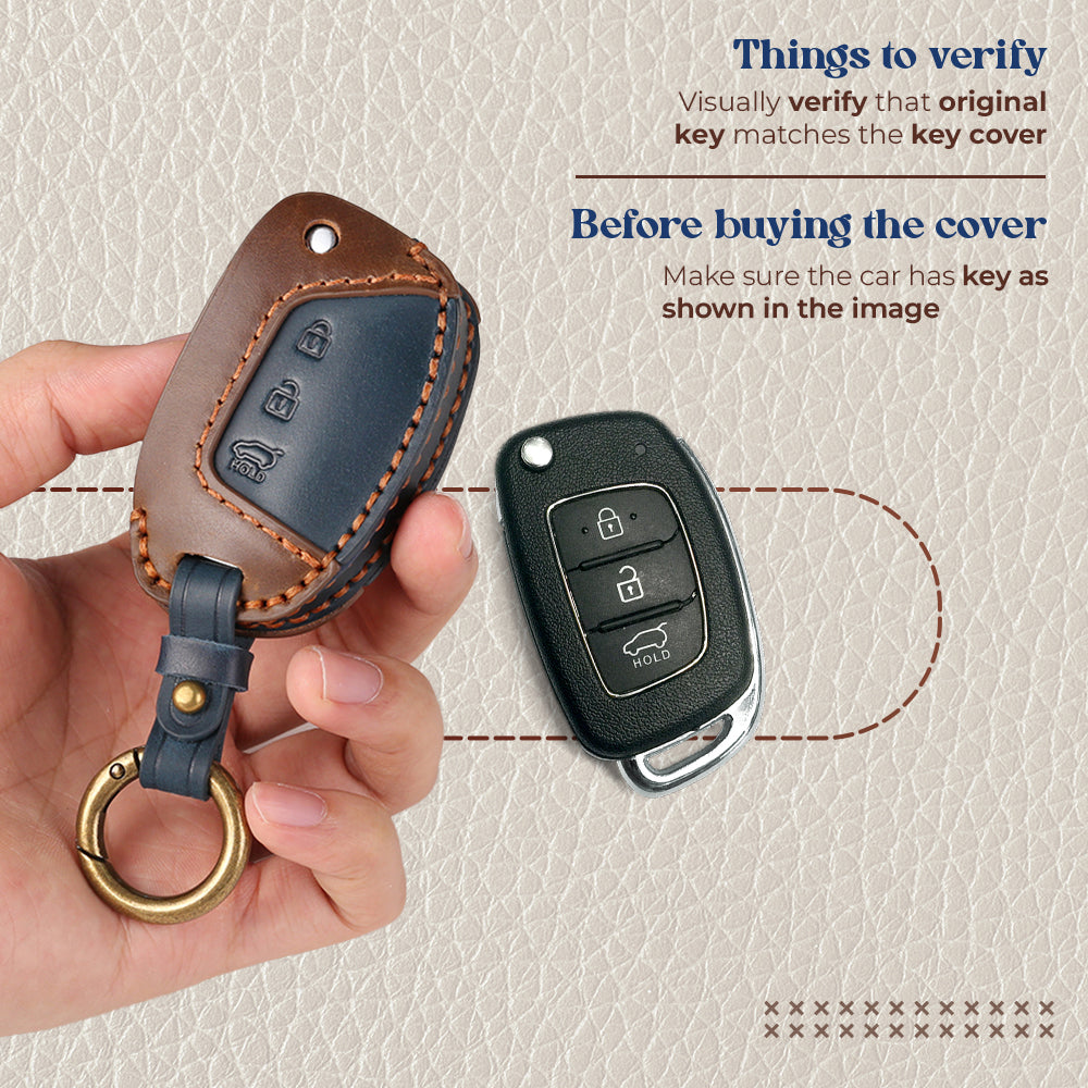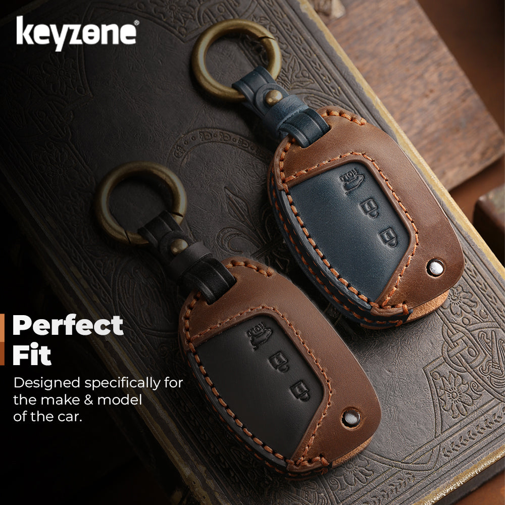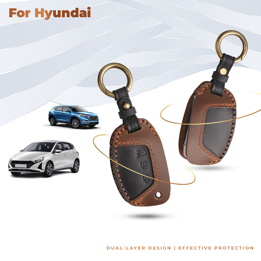 Keyzone dual leather key cover for Exter, i20, Creta, Venue, Tucson, Alcazar, Grand I10, Aura, Xcent flip key (KDL10)