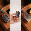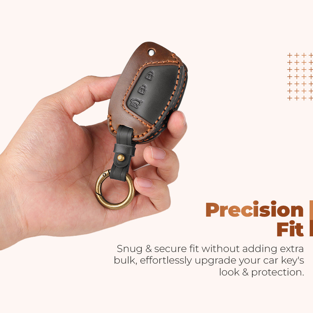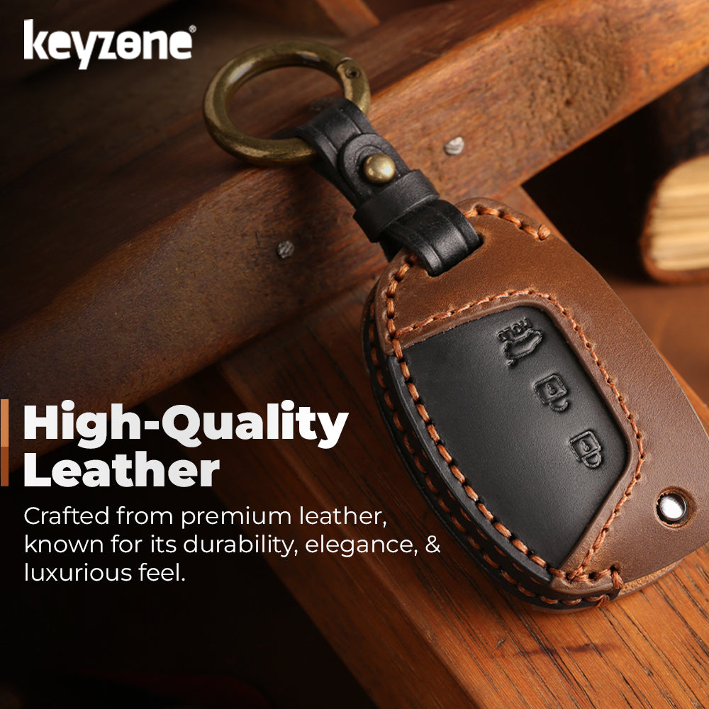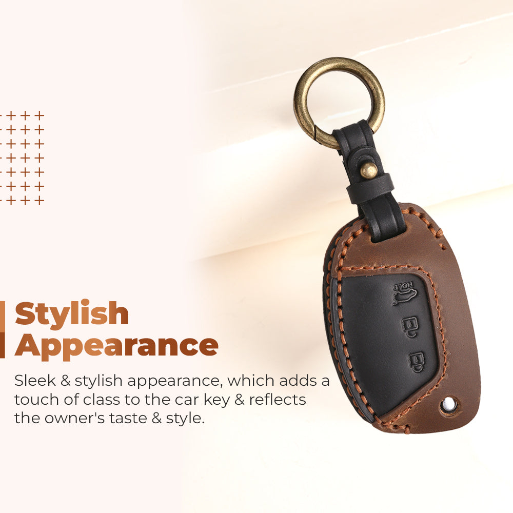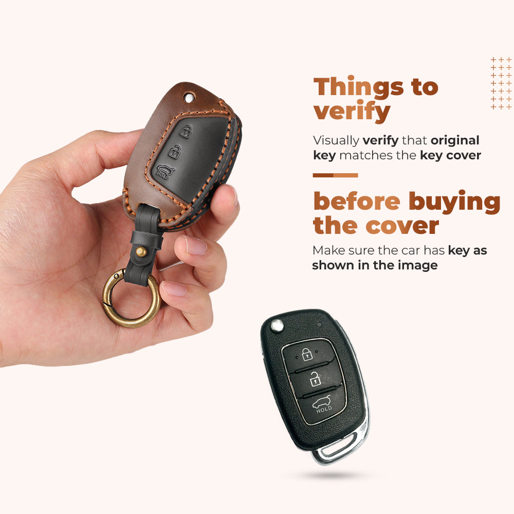 Keyzone dual leather key cover for Exter, i20, Creta, Venue, Tucson, Alcazar, Grand I10, Aura, Xcent flip key (KDL10)