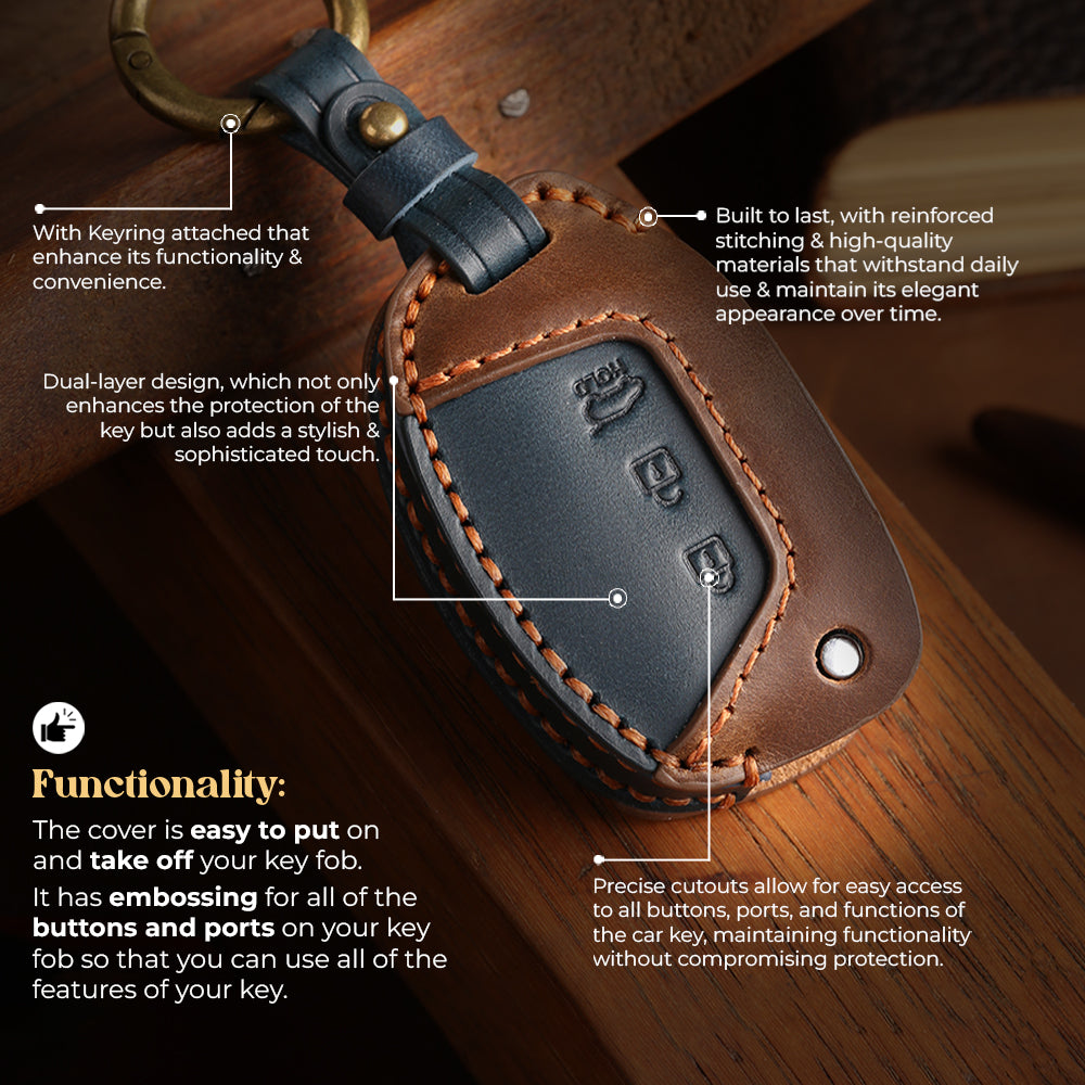 - Package Included: 1 X Leather Key Cover, and 1 X Key Chain. (Note: Key Fob not included)