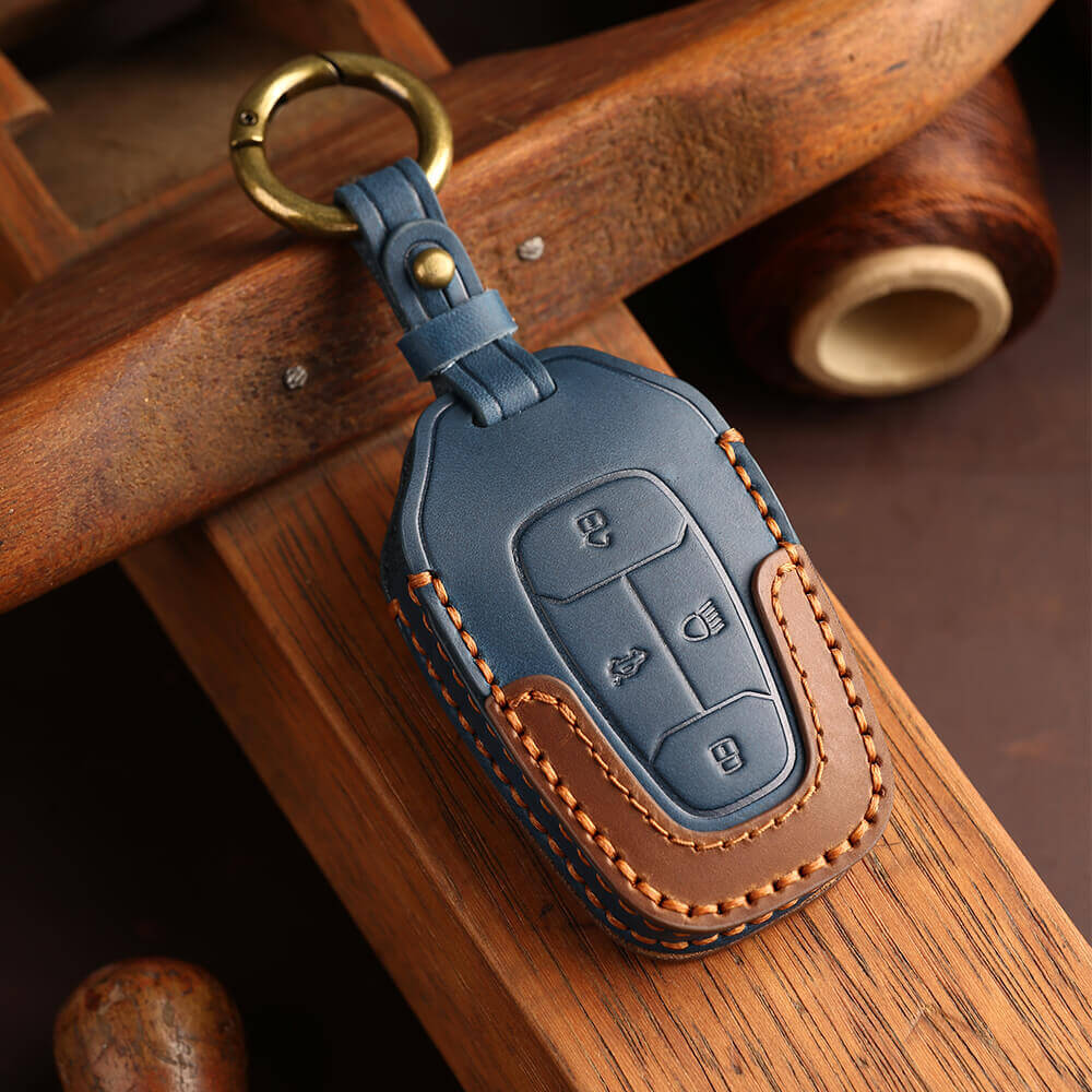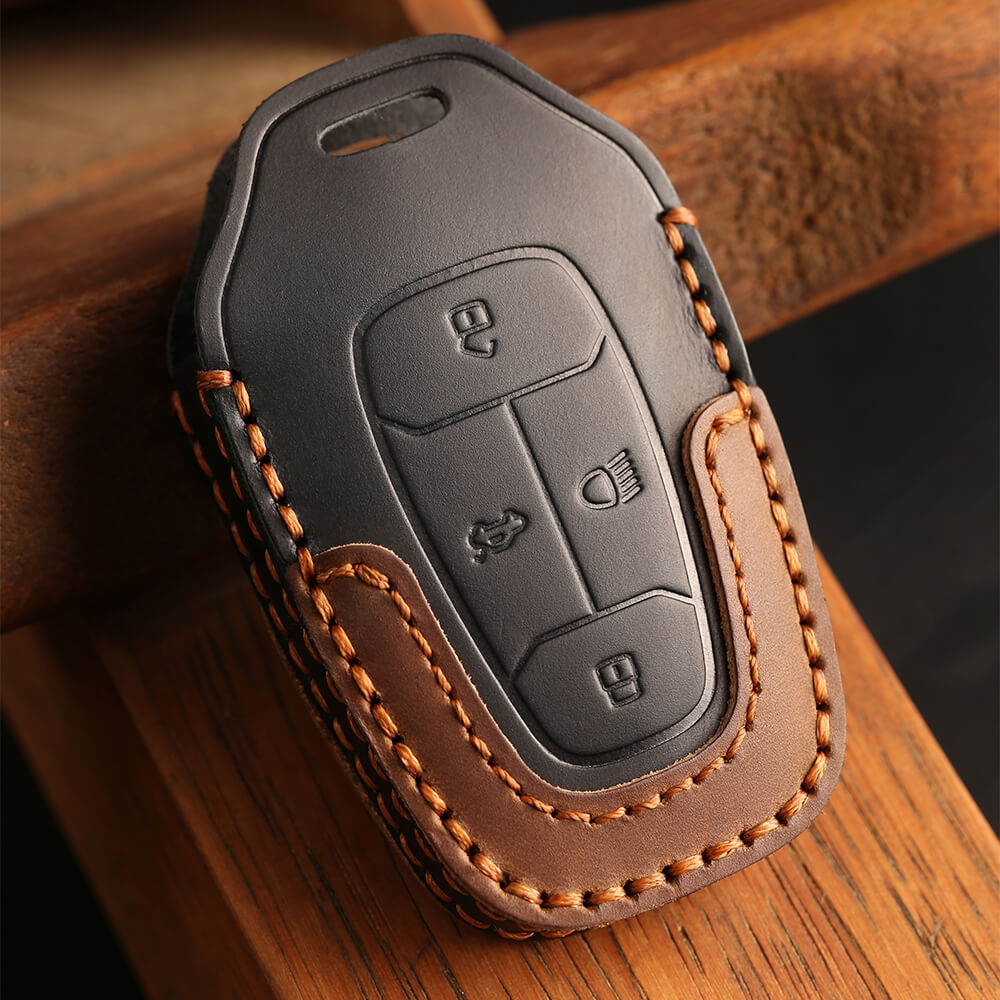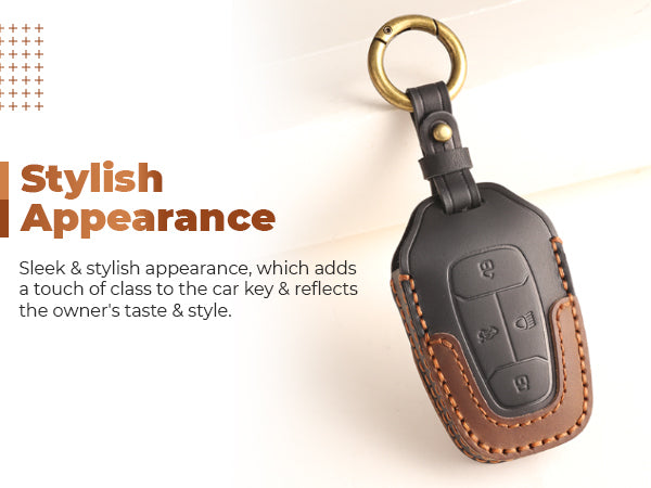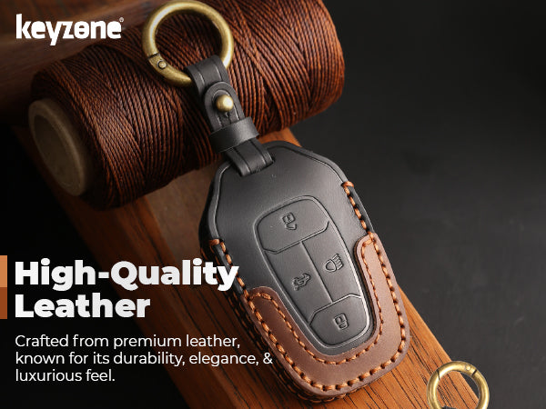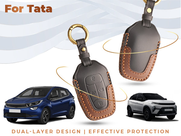 Keyzone dual leather key cover for Nexon, Harrier, Safari, Altroz, Punch, Tigor 4 button smart key (KDL08)