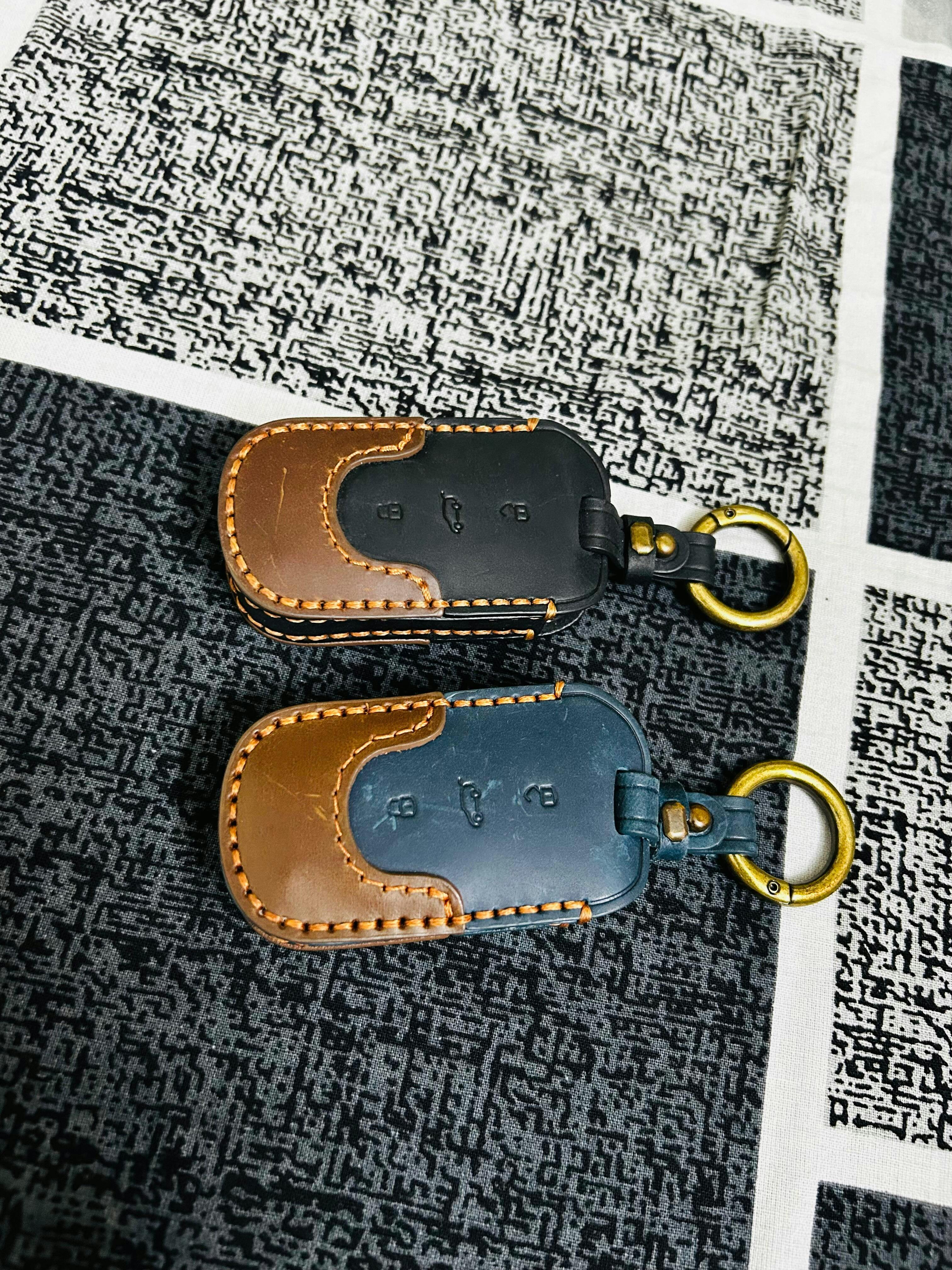 Anil . Keyzone dual leather key cover for Thar, Bolero, Scorpio, XUV700, XUV400, XUV3x0, XUV300, TUV300, Marazzo 3 button flip key (Push button start models only) (KDL09)