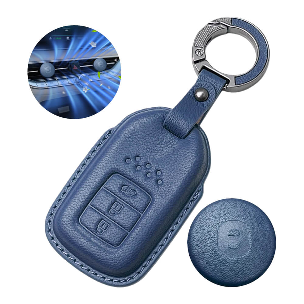 Keyzone Leather Key Cover & AC Vent Car Perfume with 4 fragrances for Honda Elevate, City, Accord, Amaze, CR-V, WR-V 3 button smart key.(PK24-3B)