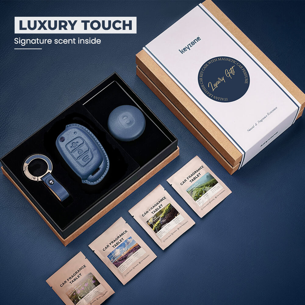 - Box Content: One key cover, one keychain, four fragrance tablets, one screwdriver, one perfume holder (suitable for car ac vents)