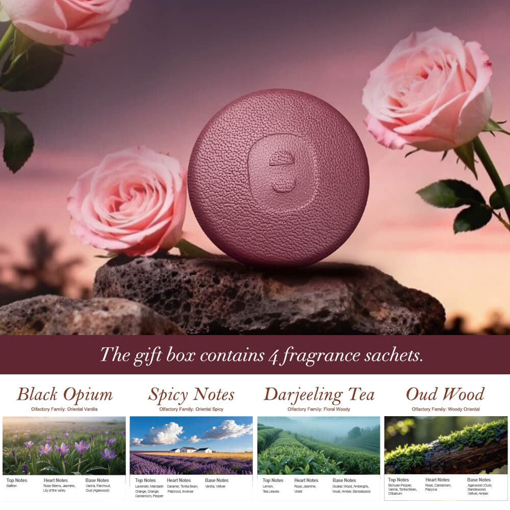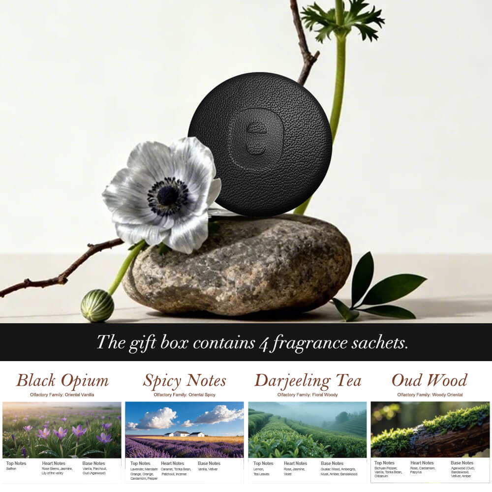 - Sophisticated Style Customization: Mix and match your aesthetic with four elegant leather colors (Classic Black, Blue, Red, and Brown) paired with four designer fragrances to perfectly reflect your personal taste.