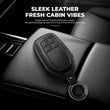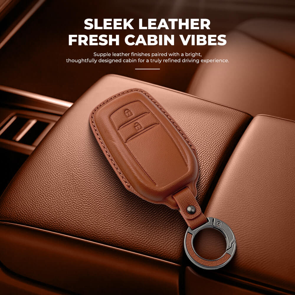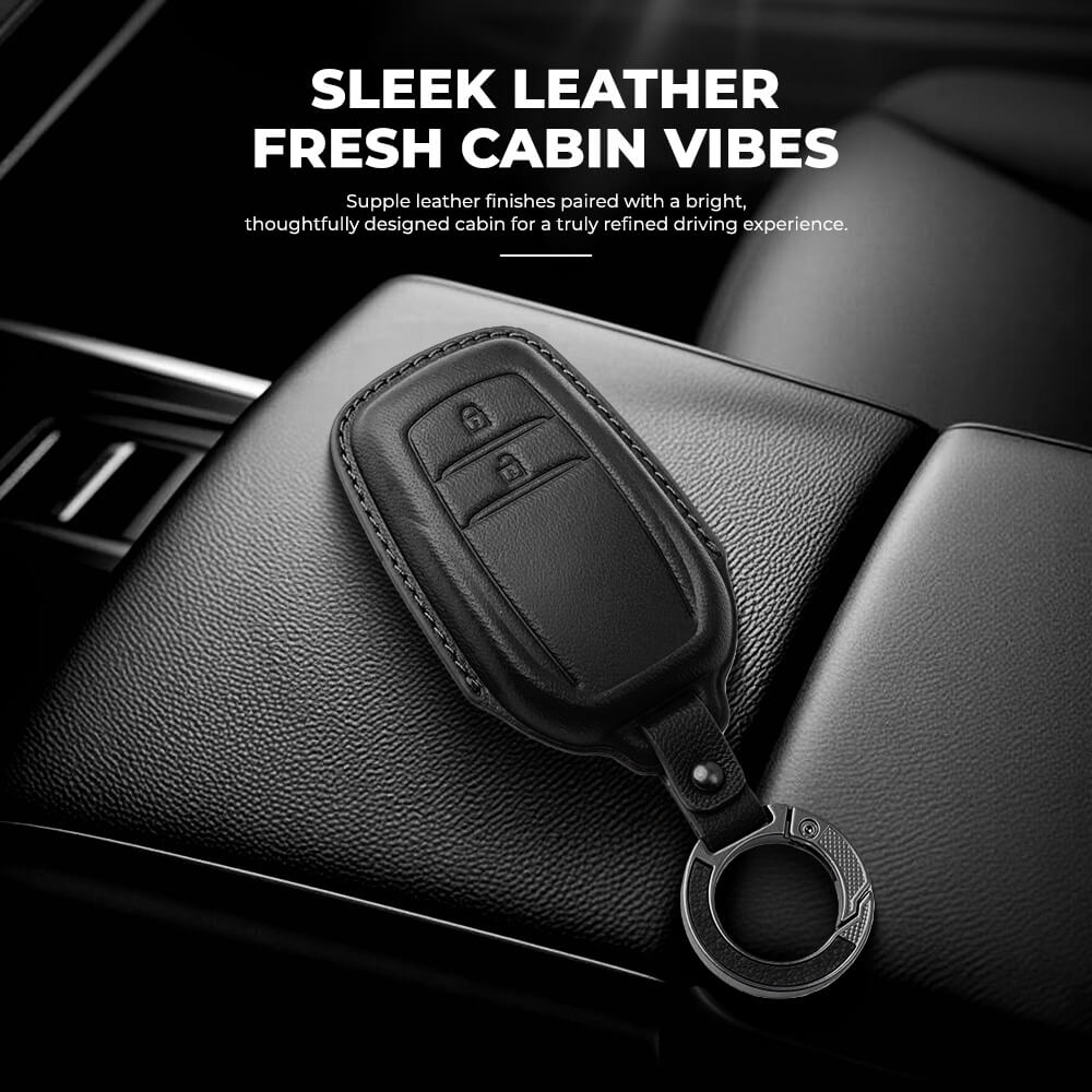 Keyzone Leather Key Cover & AC Vent Car Perfume Compatible for Toyota Innova Crysta, Innova HyCross, Hilux 2 button smart key(PK18-2B)