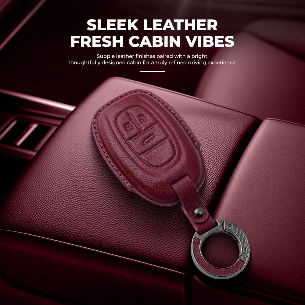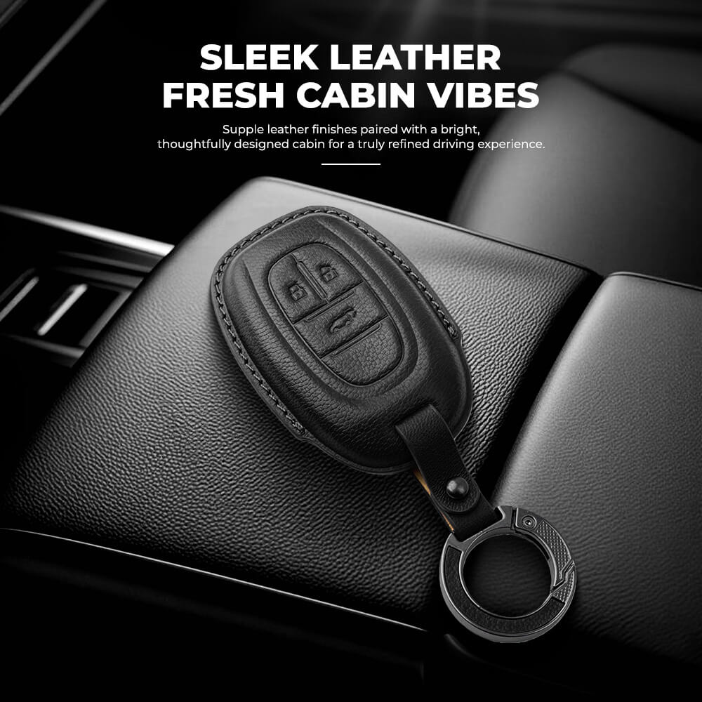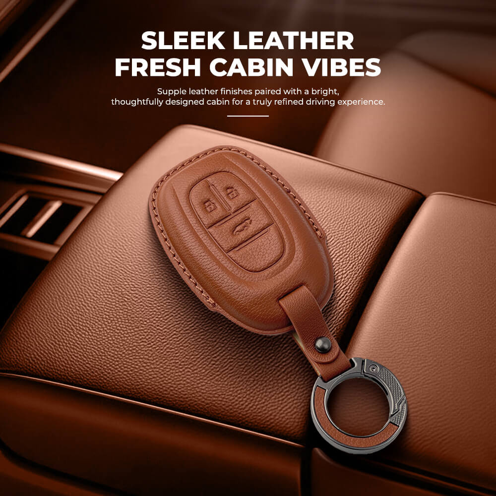 Keyzone Leather Key Cover & AC Vent Car Perfume for MG Gloster 3 button smart key(PK87)