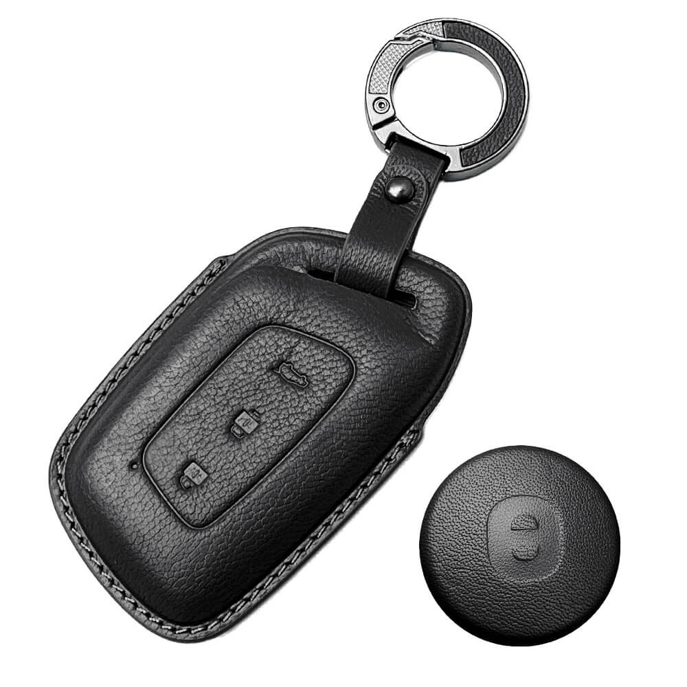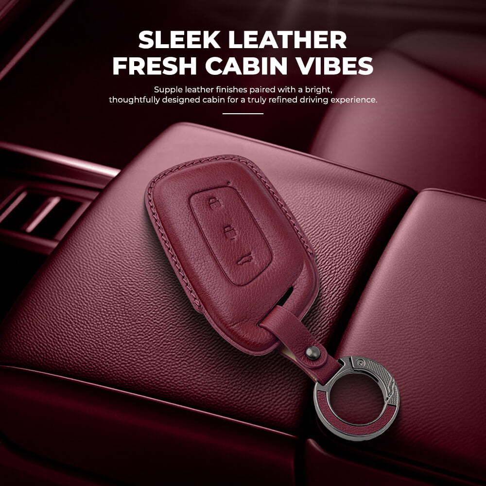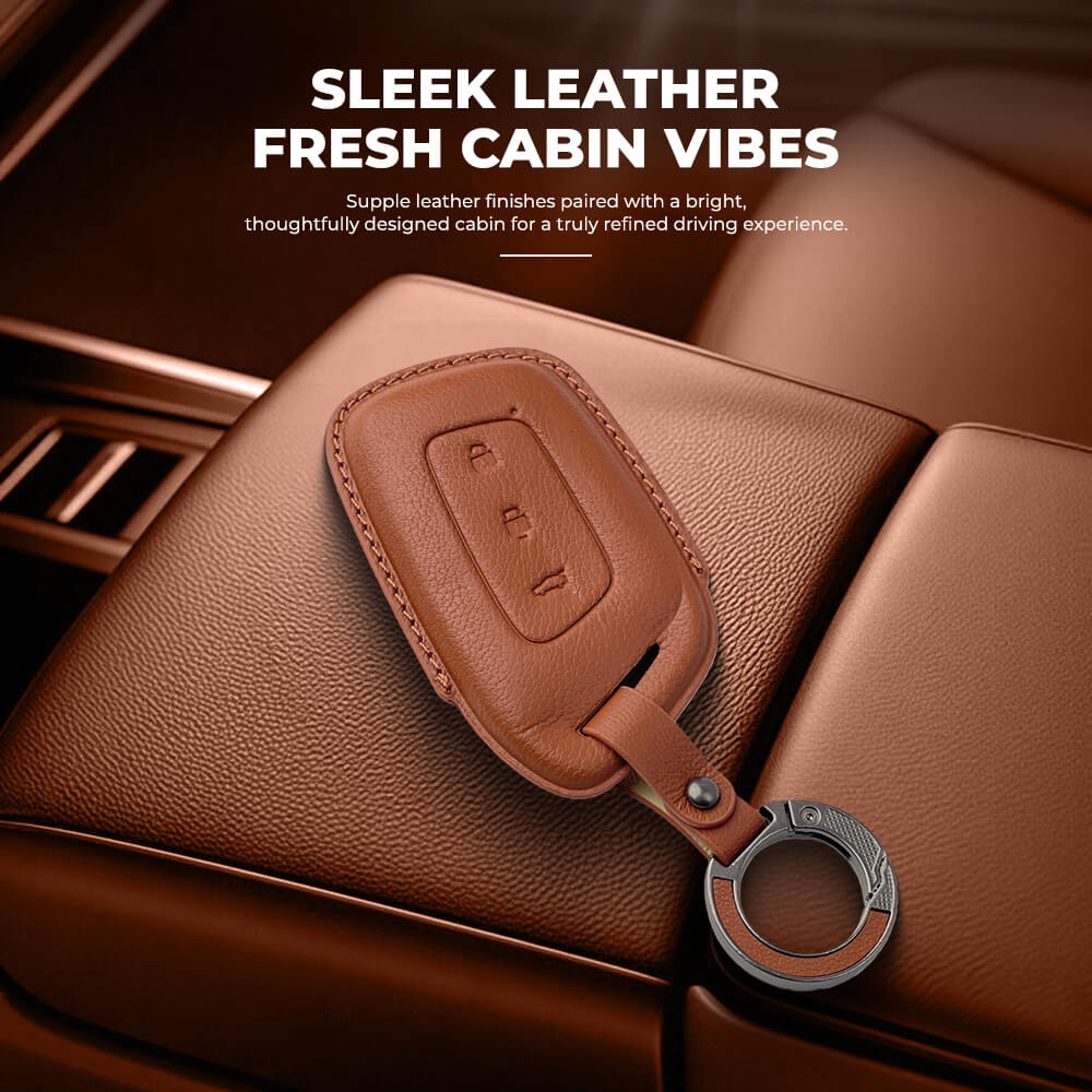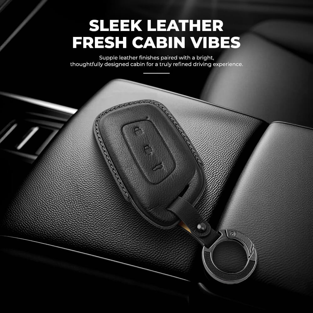 Keyzone Leather Key Cover & AC Vent Car Perfume for MG Hector 3 button smart key(PK64)