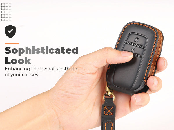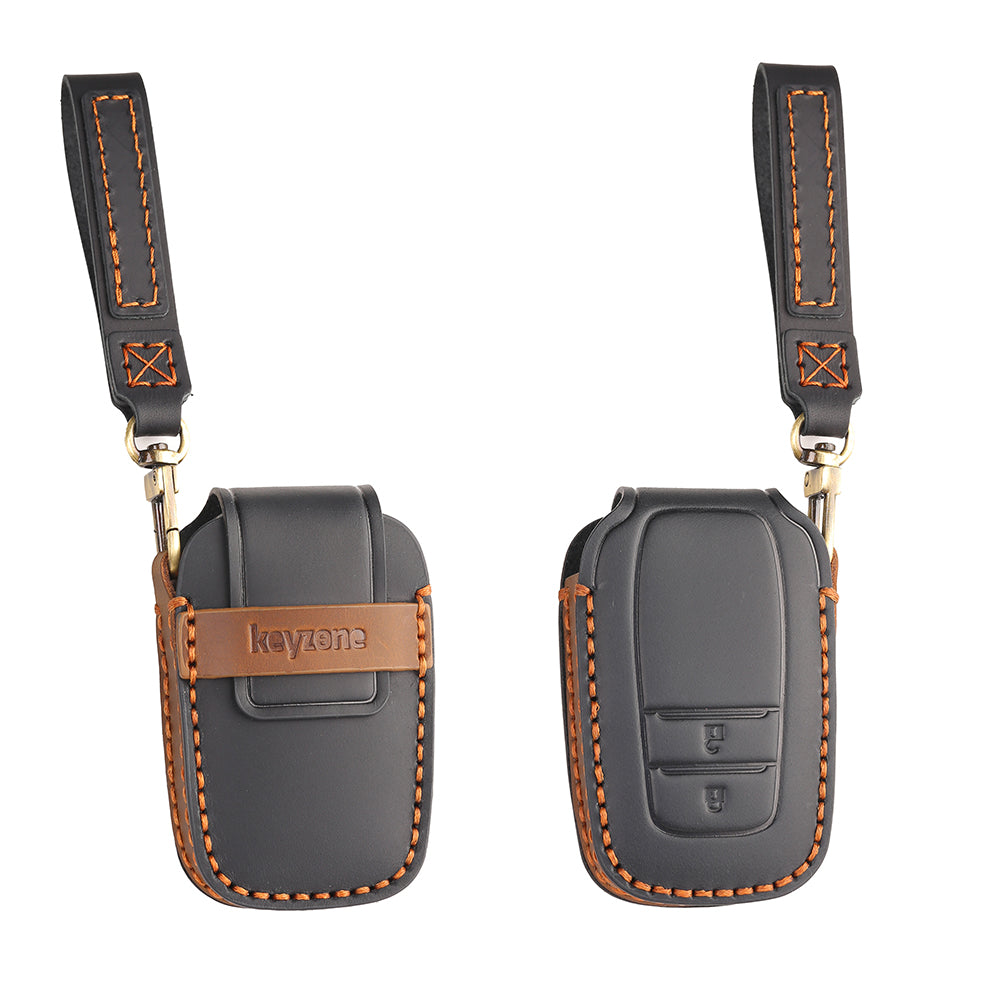 Keyzone leather key cover for Innova Crysta, Innova HyCross, Hilux 2 button smart key (KZL18_2b)