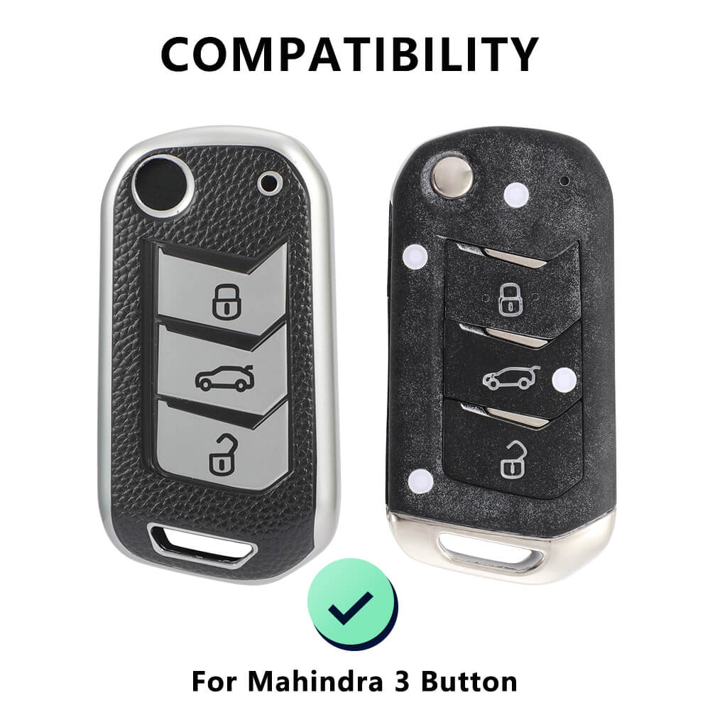 Keyzone Leather TPU Key Cover compatible for Thar, Bolero, Scorpio, XUV700, XUV400, XUV3x0, XUV300, TUV300, Marazzo 3 button flip key (LTPU09)
