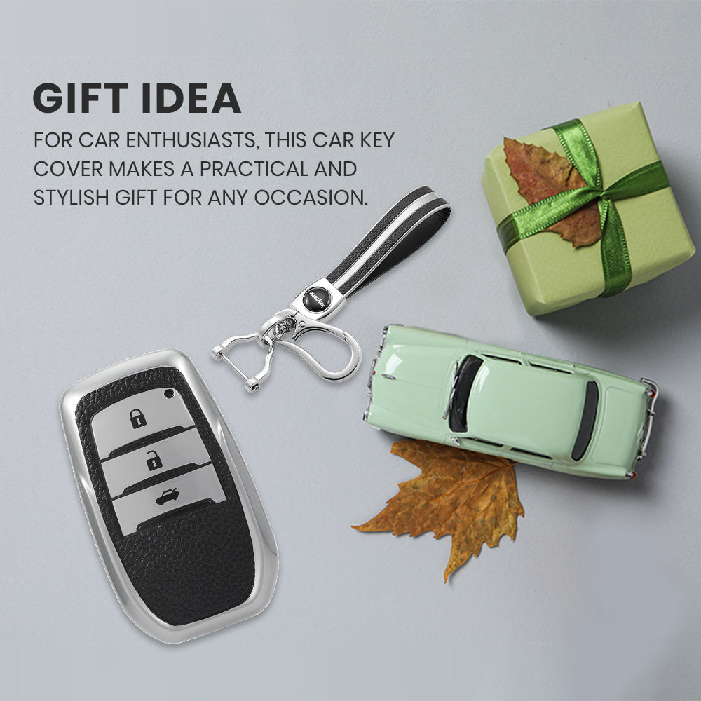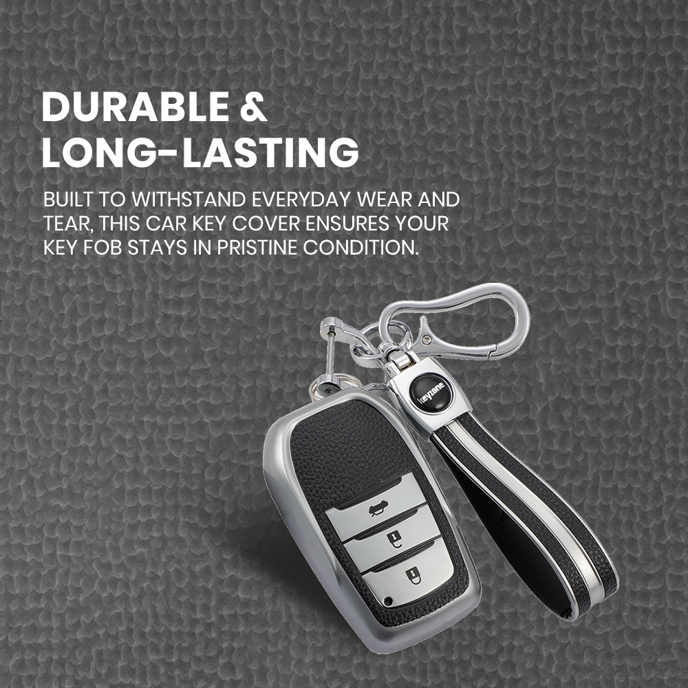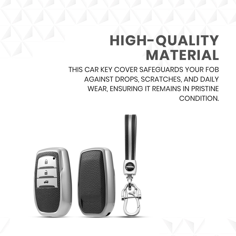 Keyzone leather TPU key cover & keychain for Innova Crysta, HyCross, Hilux, Land Cruiser, Fortuner, Legender, Invicto smart key (LTPU18_3b, LTPUKeychain)