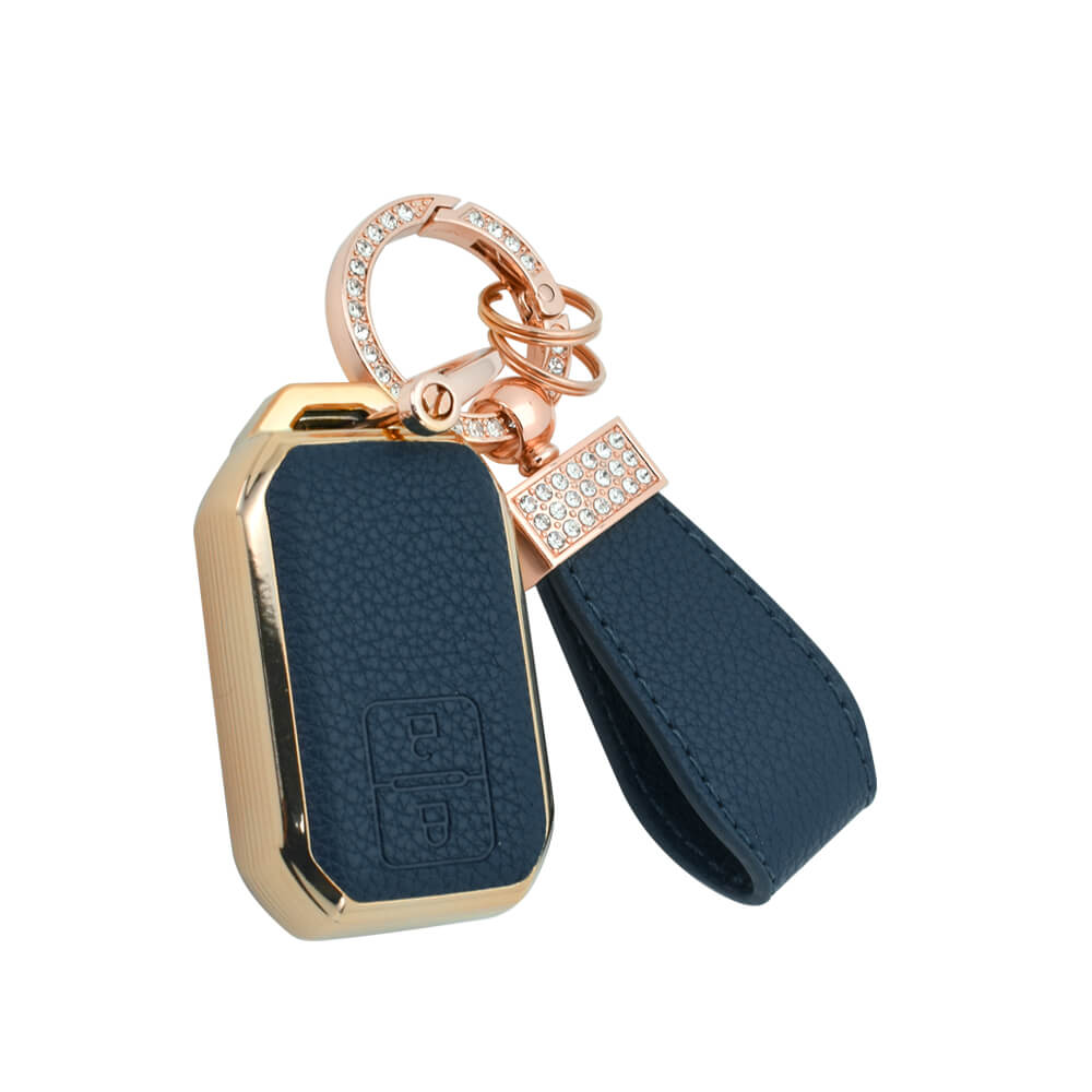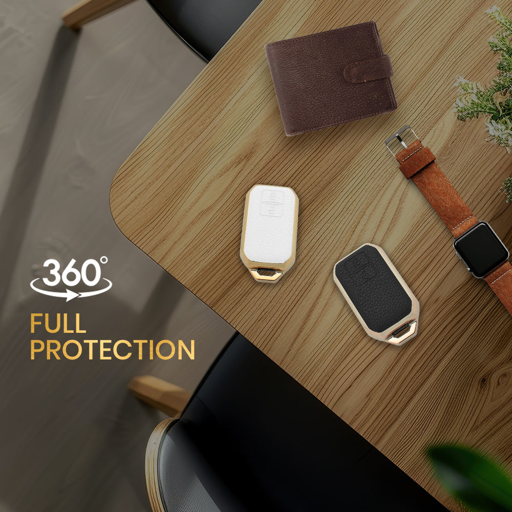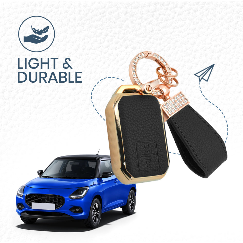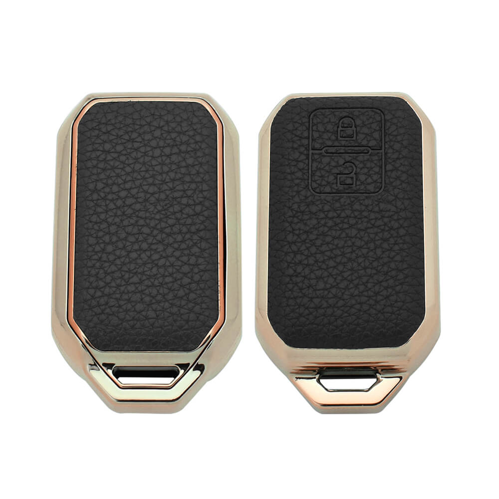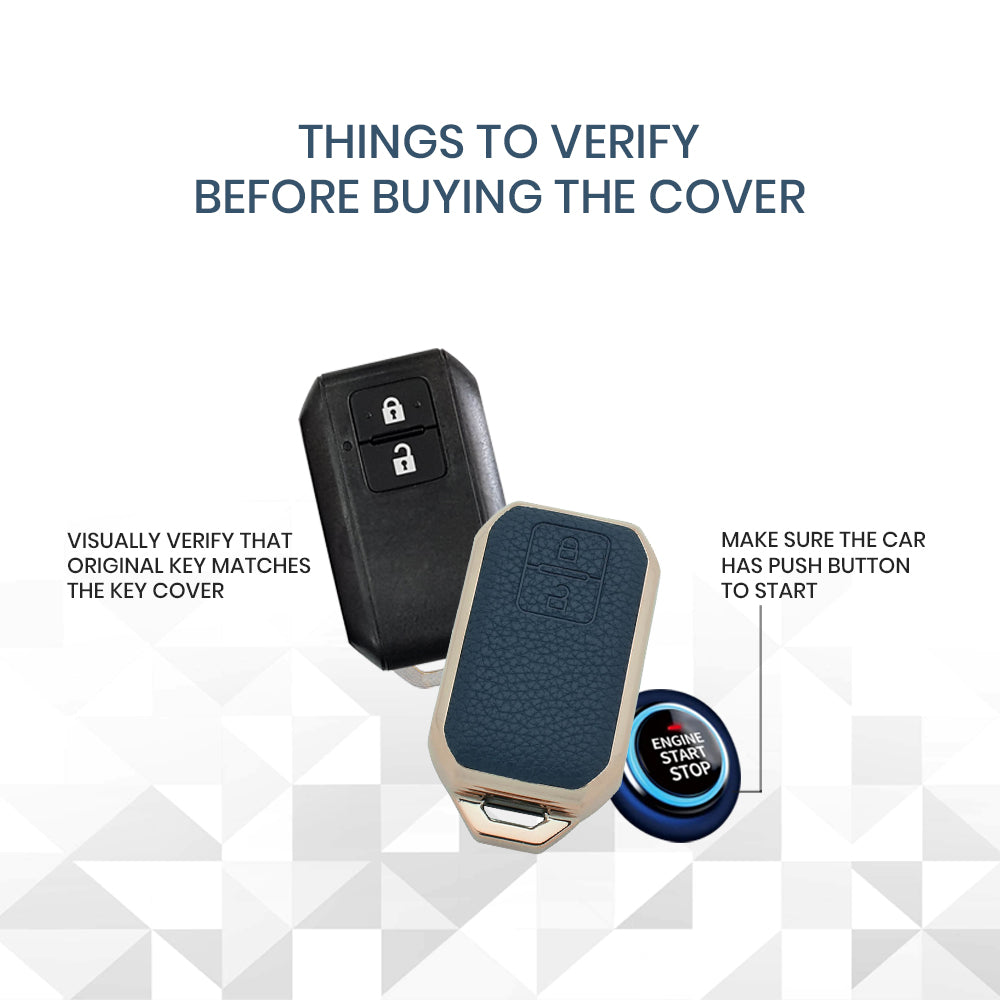 Keyzone litchi leather textured TPU key cover & keychain for Victoris, Baleno, Jimny, Swift, Ertiga, Grand Vitara, XL6, Brezza, Fronx, Dzire, Glanza, Urban Cruiser Hyryder 2 button smart key (BLTP05)