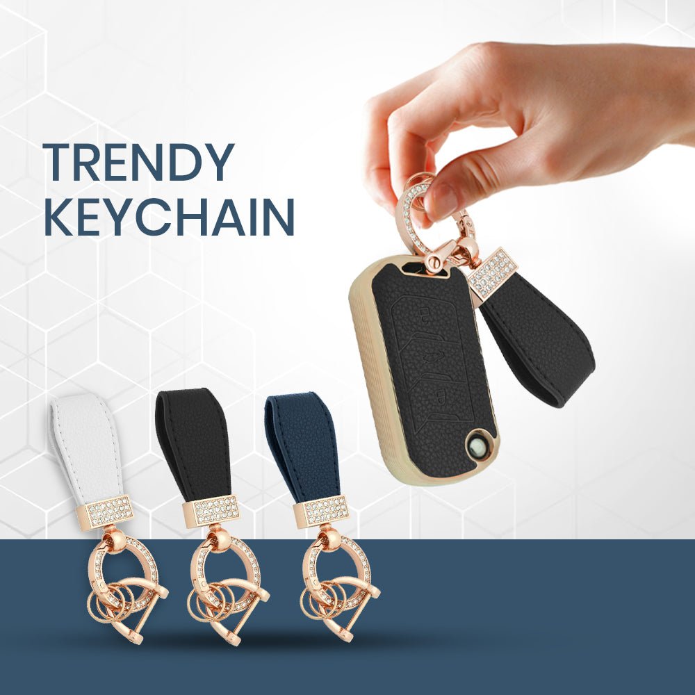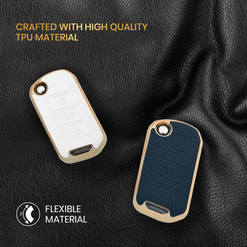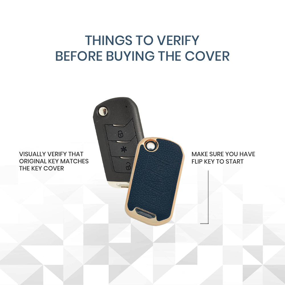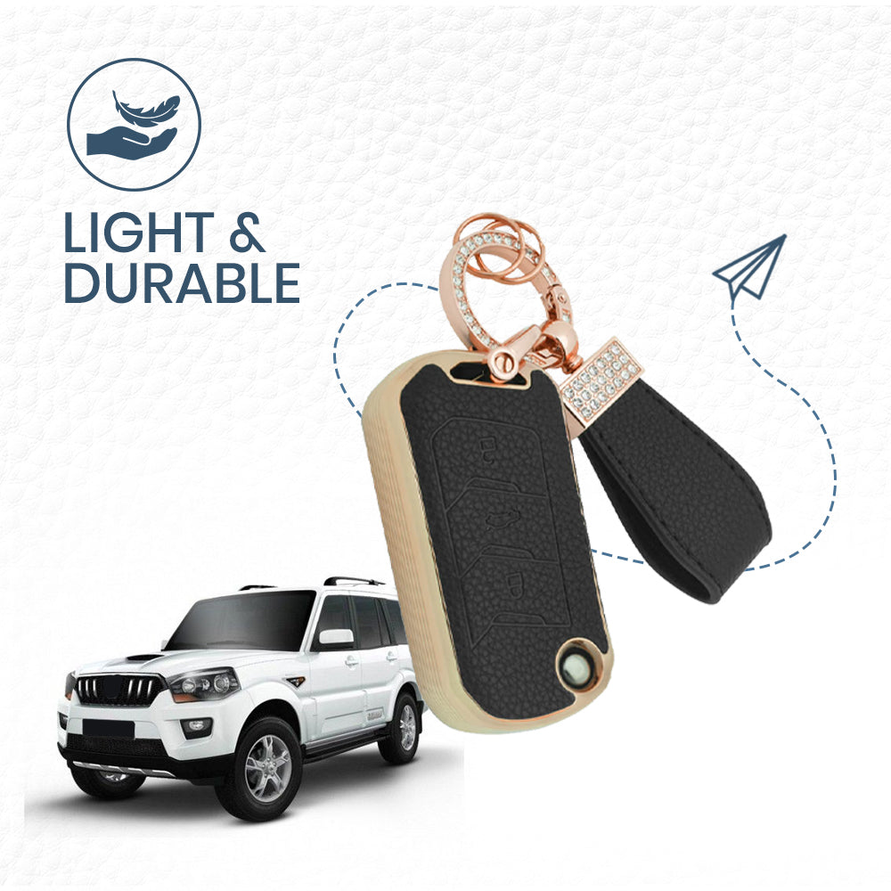 Keyzone litchi leather textured TPU key cover & keychain for Thar, Thar Roxx, Bolero, Scorpio, XUV700, XUV400, XUV3x0, XUV300, TUV300, Marazzo flip key (BLTP09)