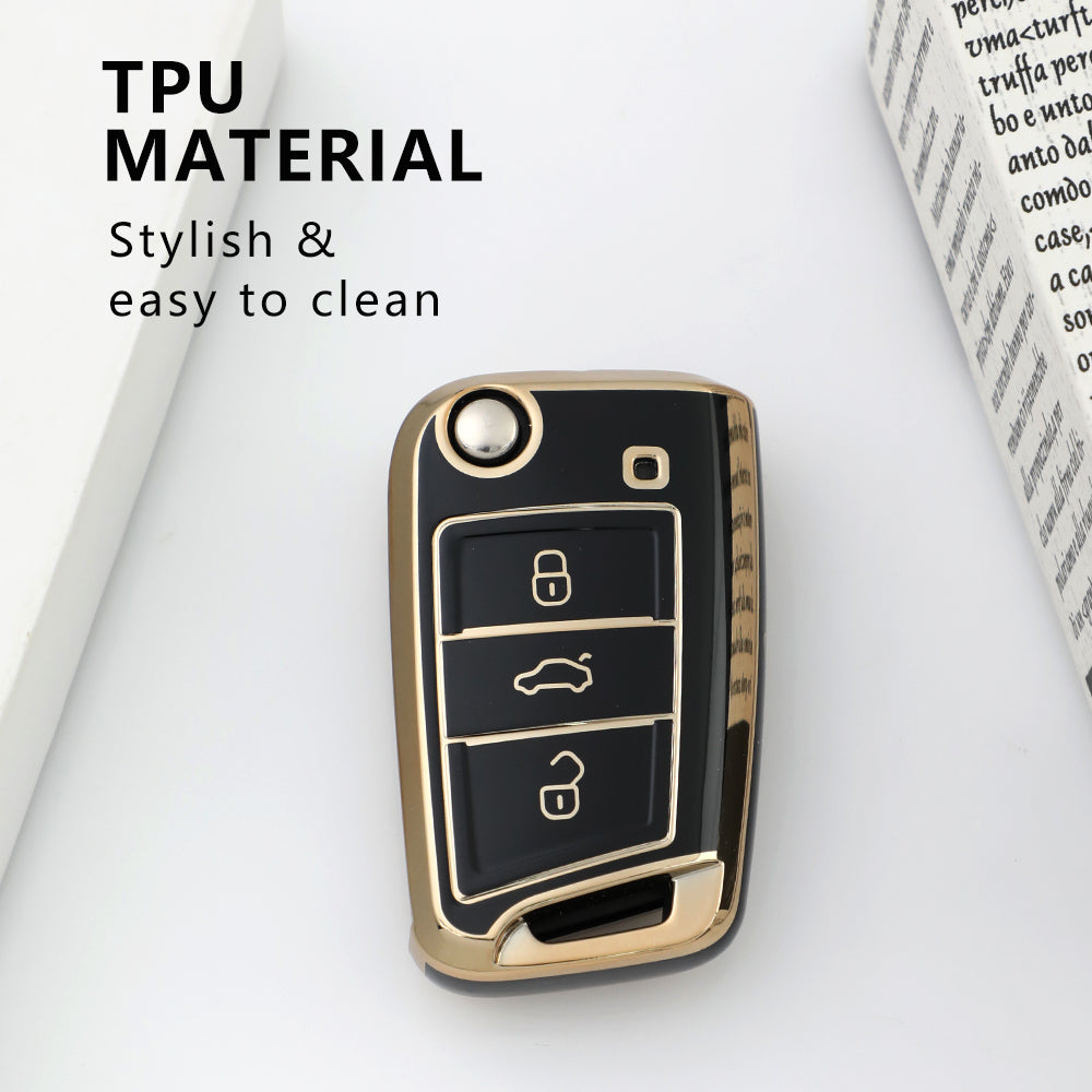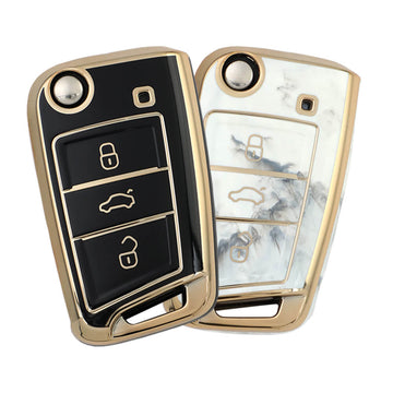 Keyzone pack of 2 TPU key cover for Skoda : Octavia, Karoq, Superb, Kodiaq, Slavia 3 button Flip Key (TP44-pack of 2)
