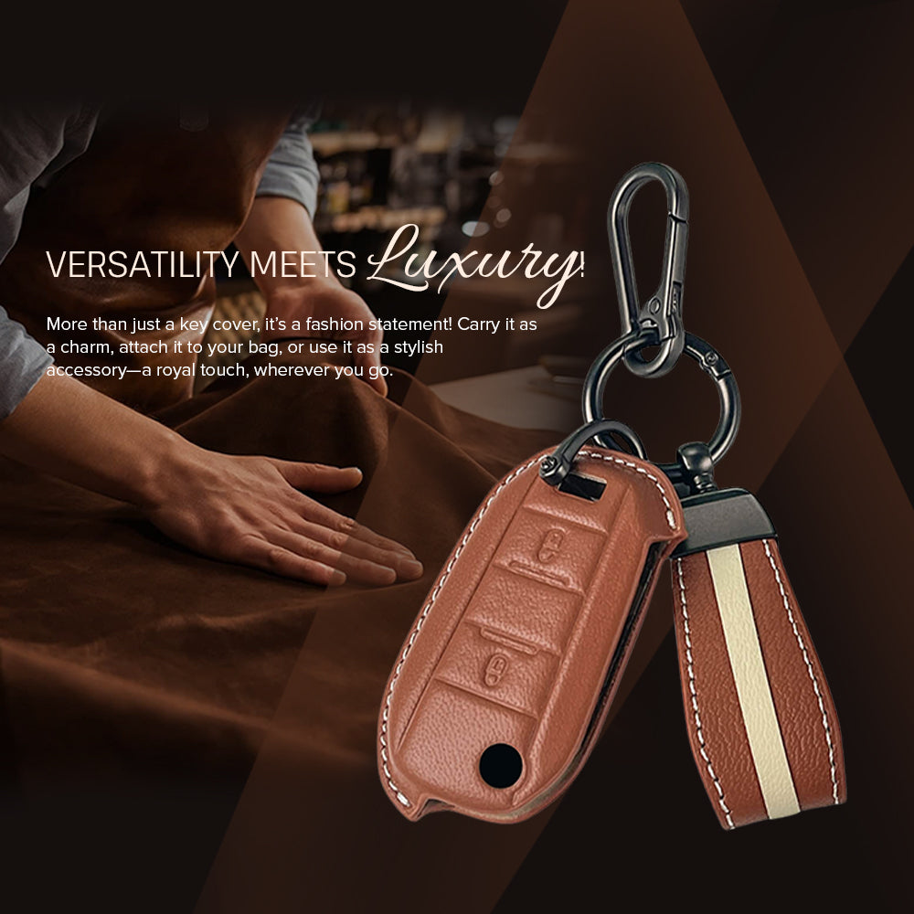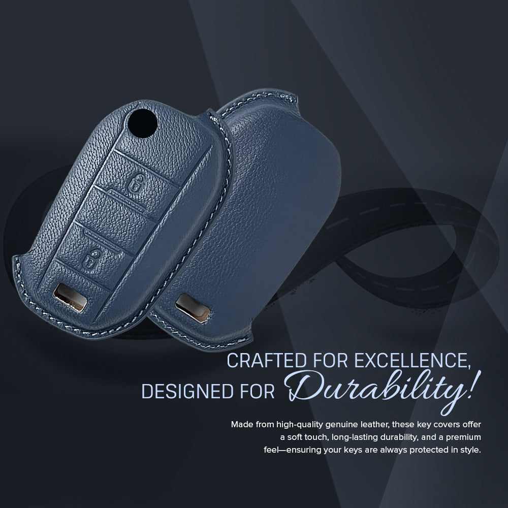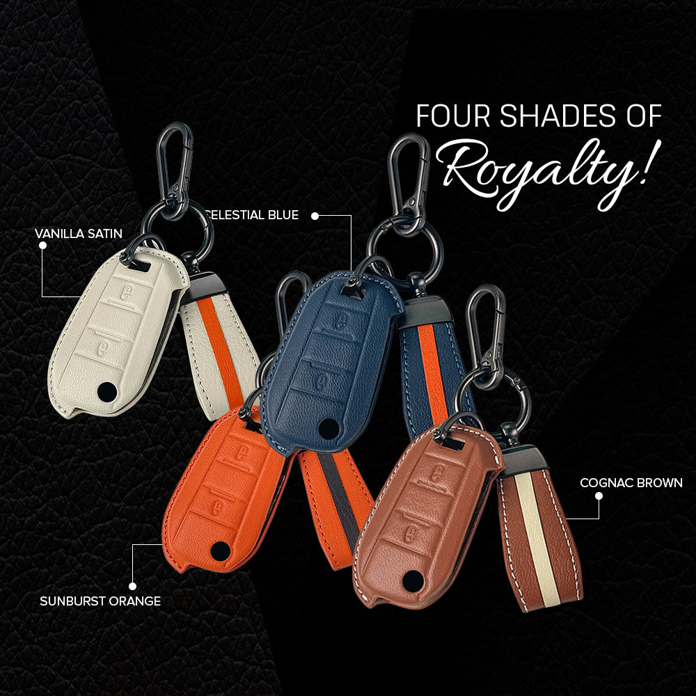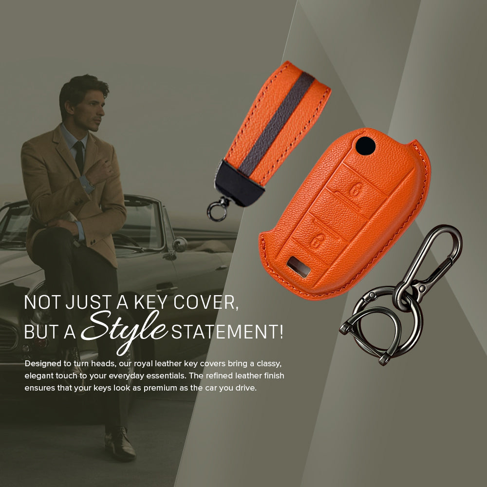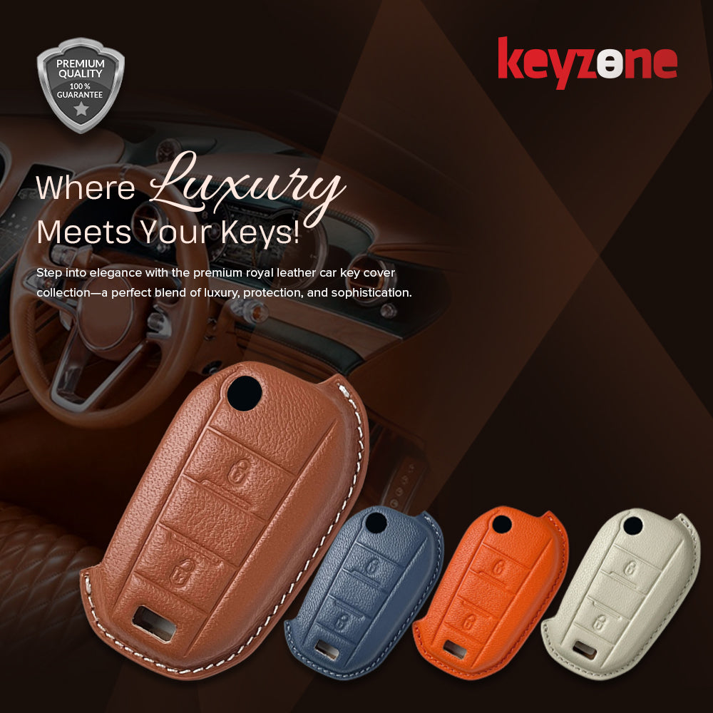 Keyzone royal leather key cover for Citroen Basalt, C3, C3 AirCross flip key (RL84)
