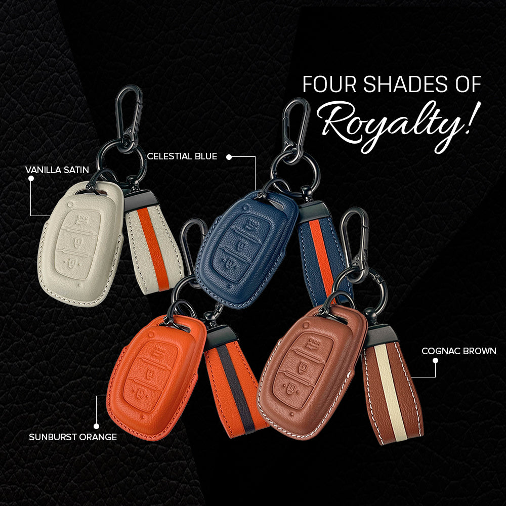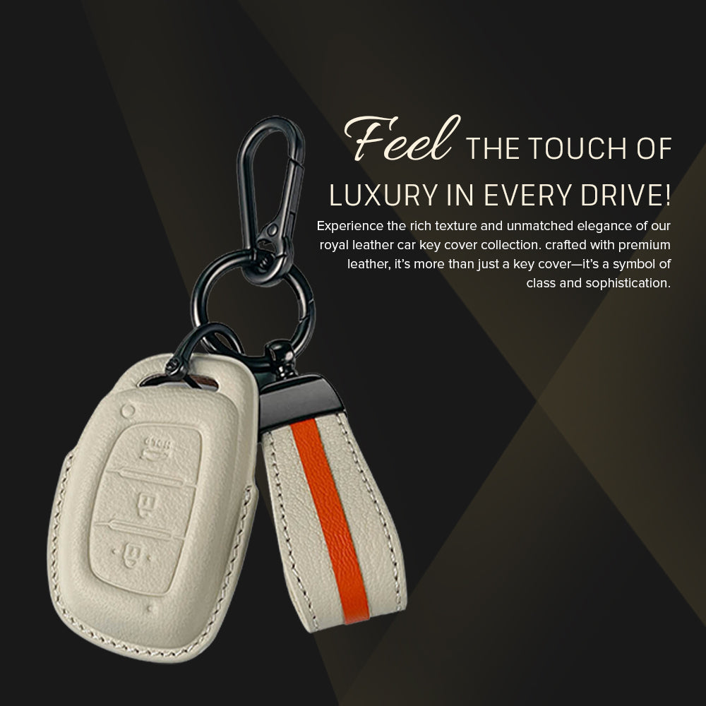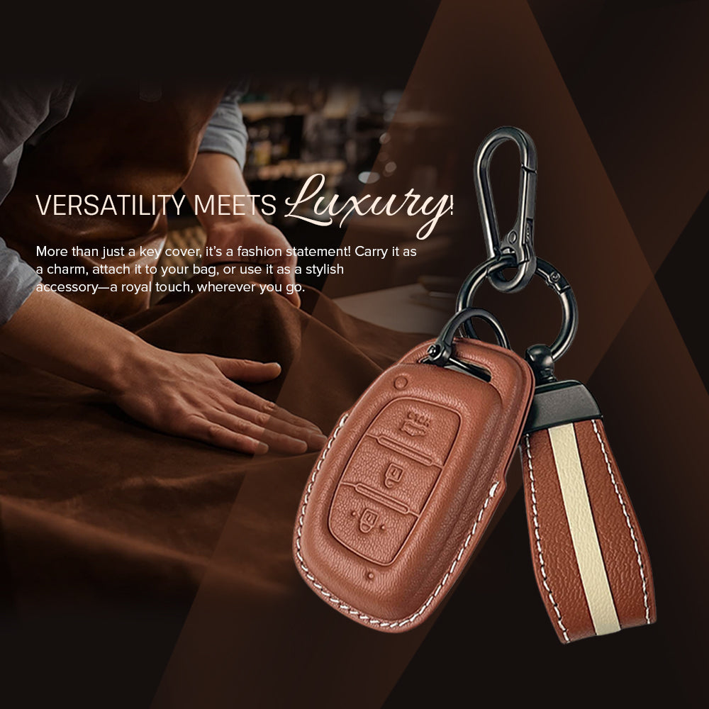 Keyzone royal leather key cover for i20, Creta, Venue, Tucson, Alcazar, Verna, Xcent, Aura, Elantra 3 button smart key (RL07)