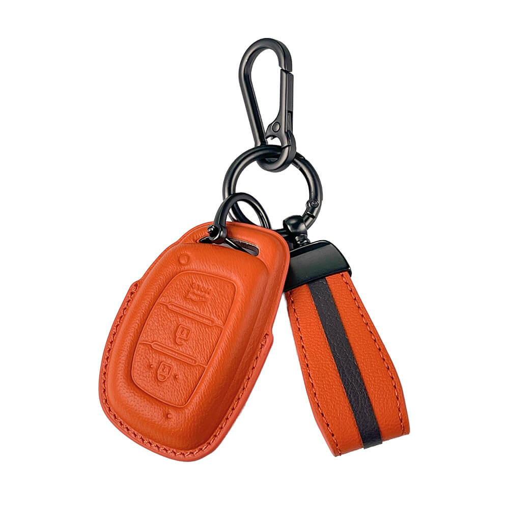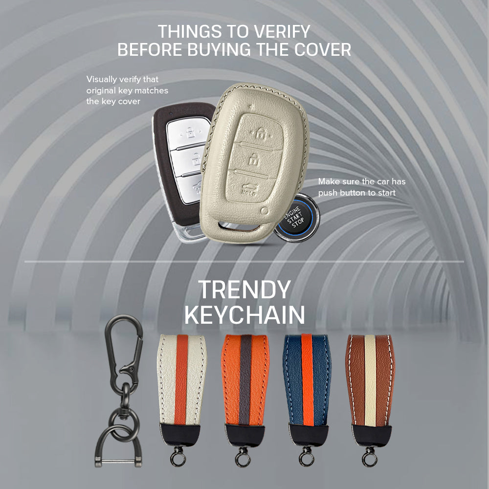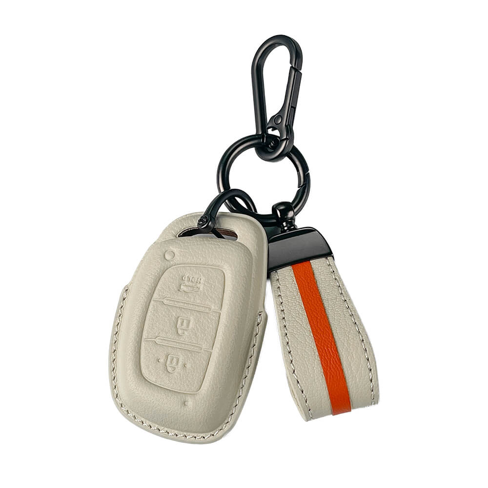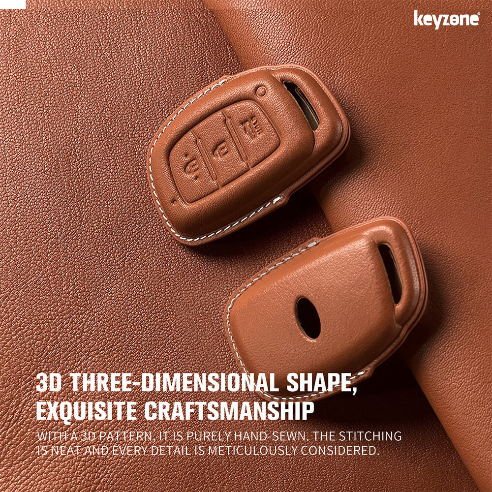 Keyzone royal leather key cover for i20, Creta, Venue, Tucson, Alcazar, Verna, Xcent, Aura, Elantra 3 button smart key (RL07)