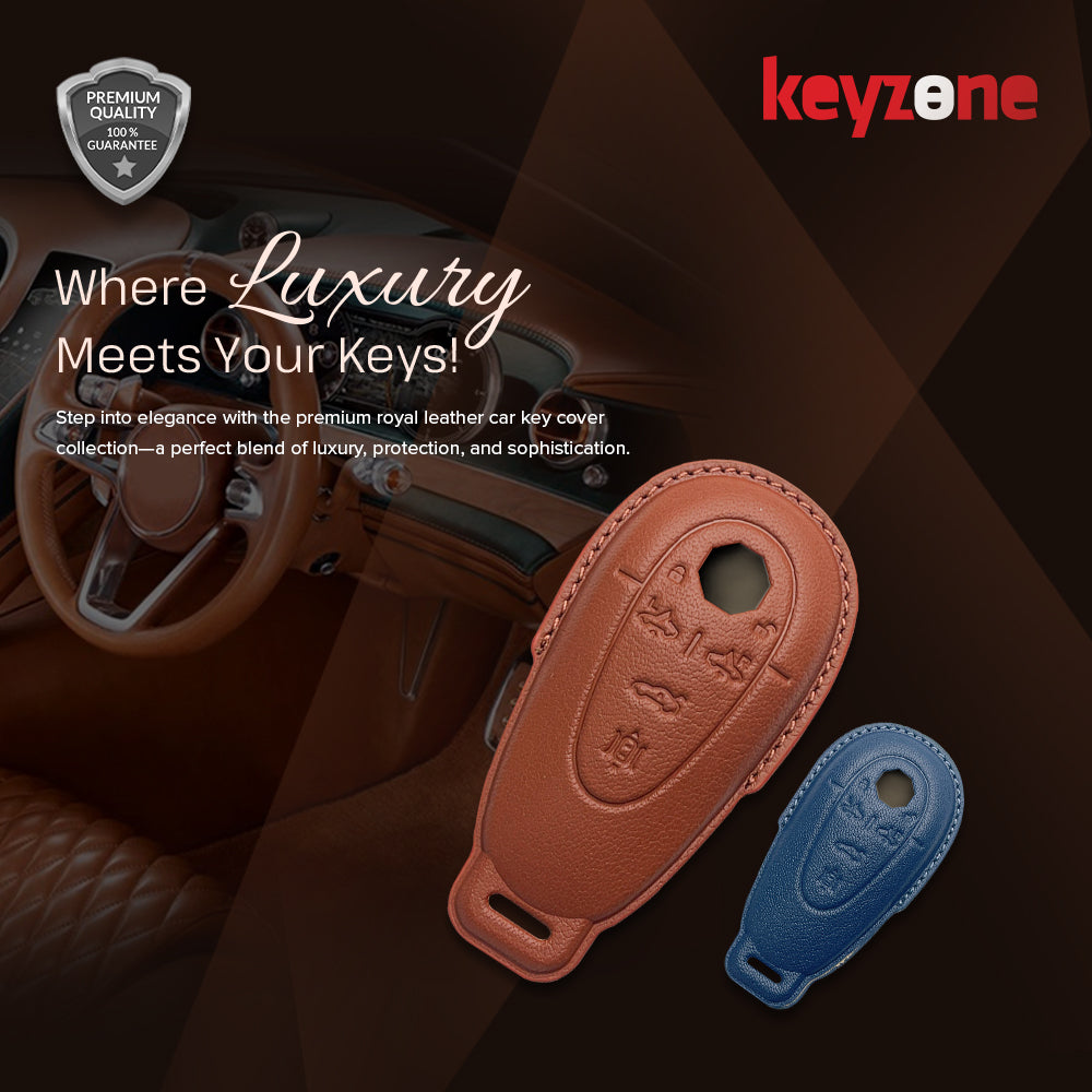 Keyzone royal leather key cover for MG Cyberster smart key (RL90)