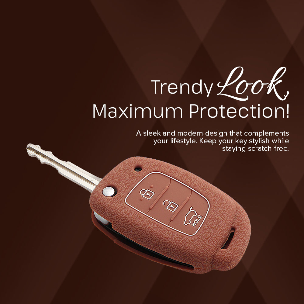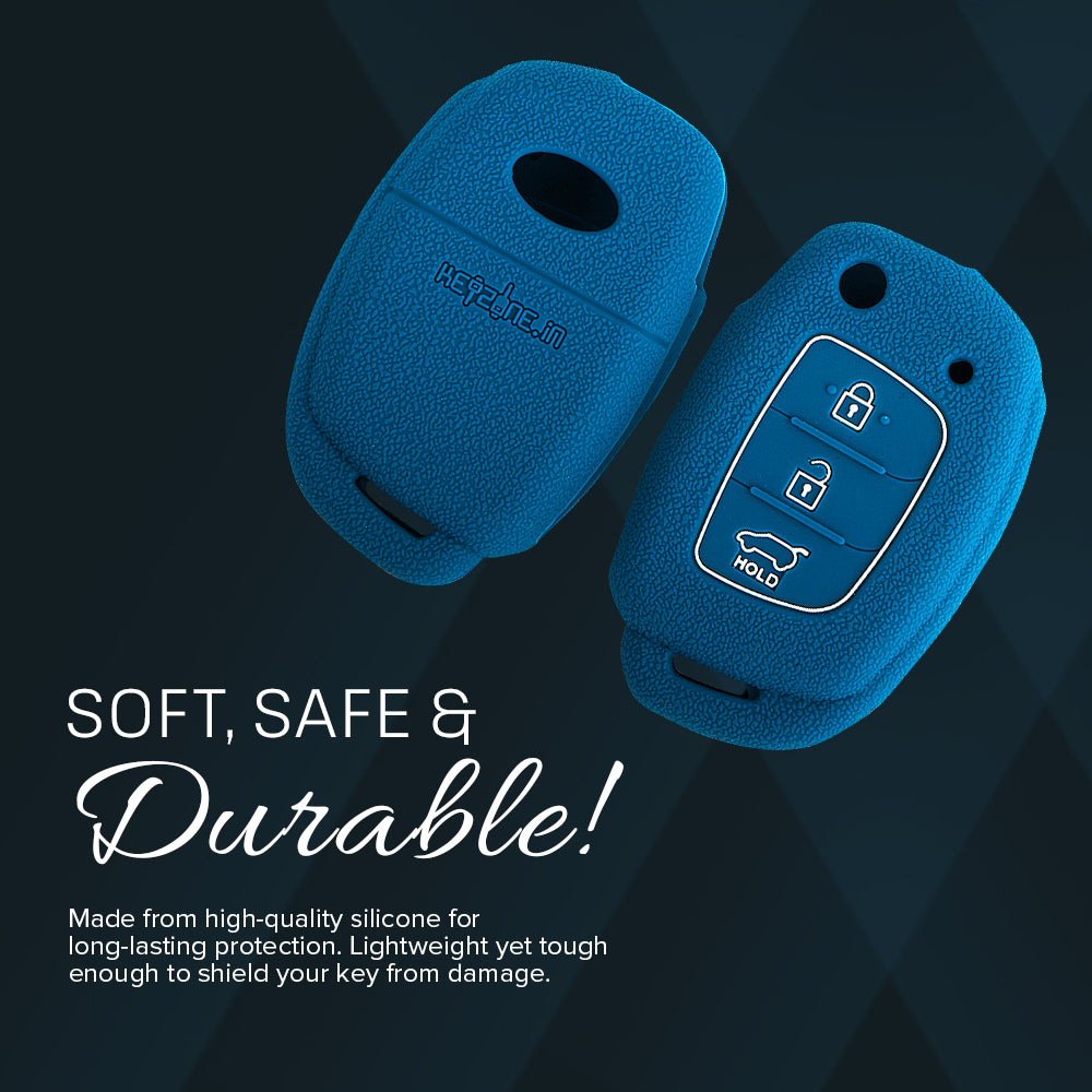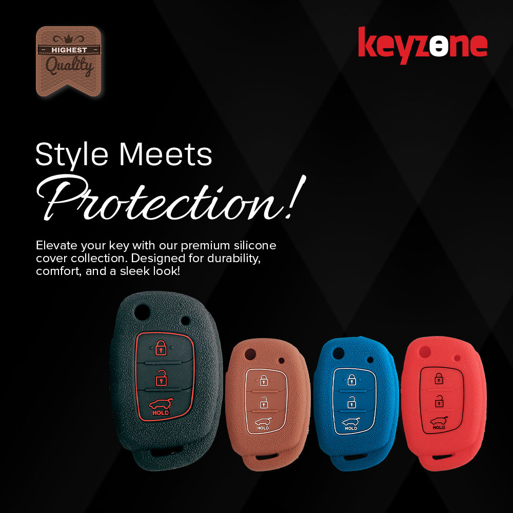 Keyzone silicone key cover fit for : Creta, I20 2020, I20 Elite, I20 Active, Grand I10, Aura, Xcent 19 Onwards, Venue flip key (KZ-02)