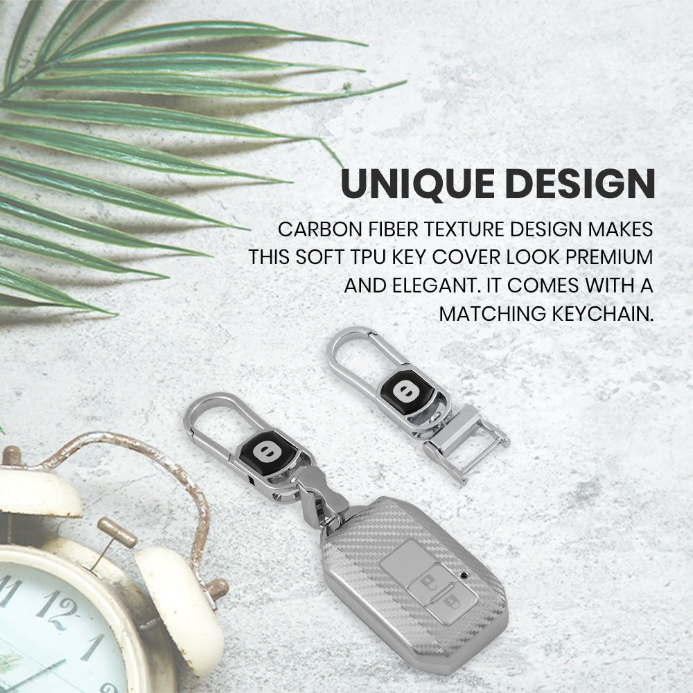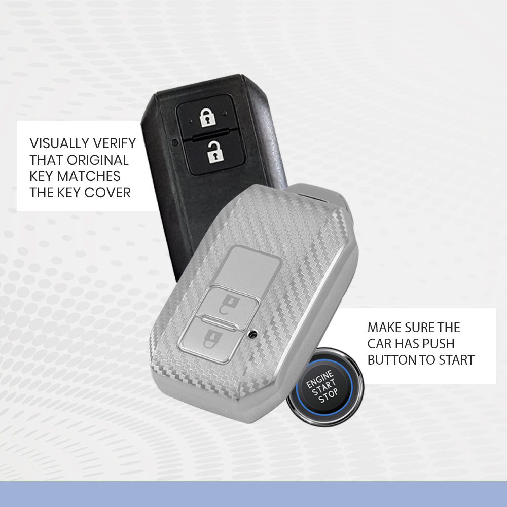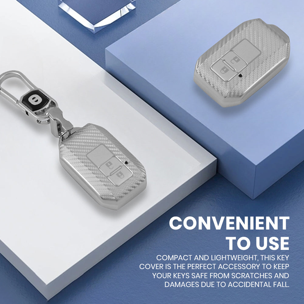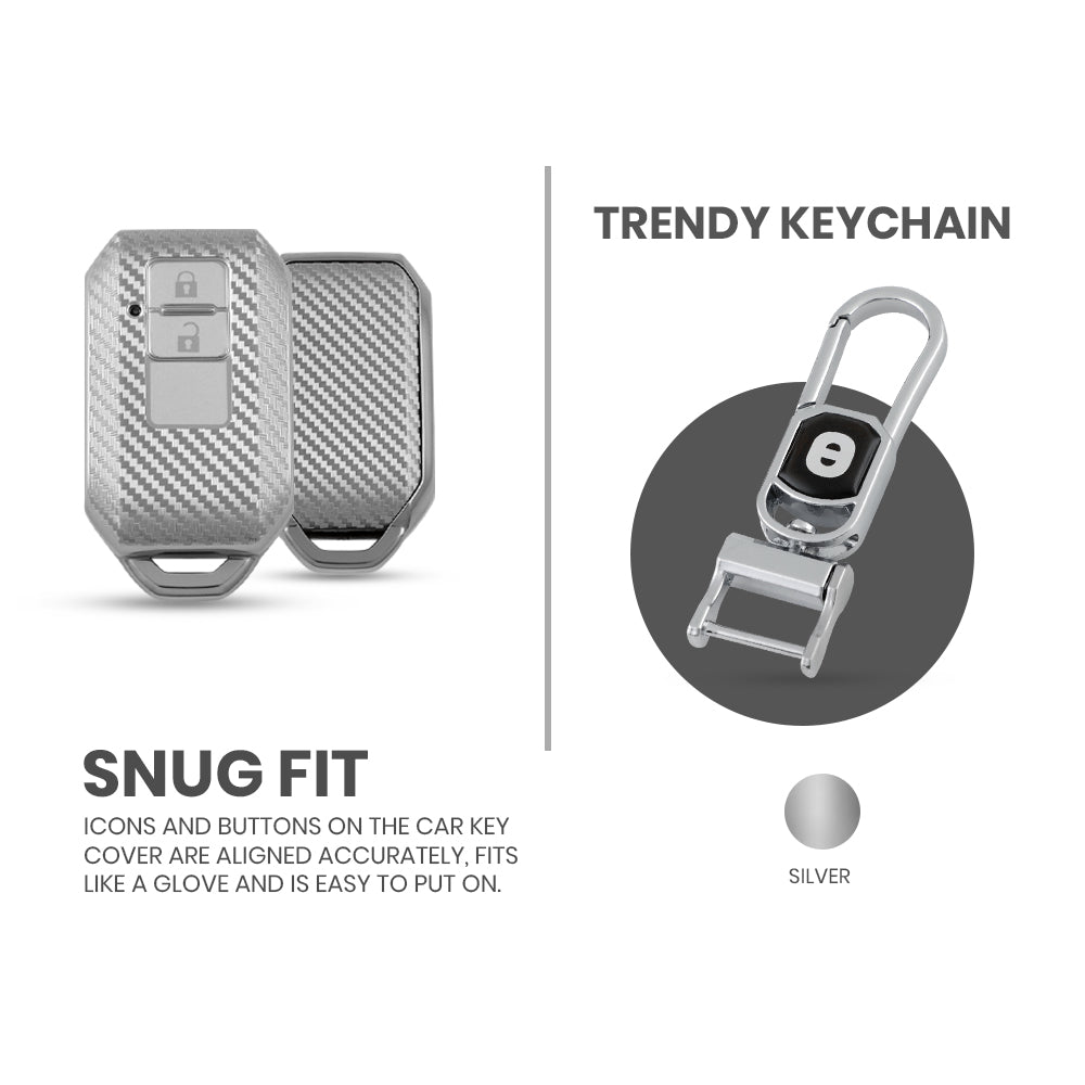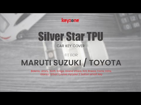 Keyzone silverstar TPU key cover & keychain for Victoris, Baleno, Jimny, Swift, Ertiga, Grand Vitara, XL6, Brezza, Fronx, Dzire, Glanza, Urban Cruiser Hyryder 2 button smart key (SS05)