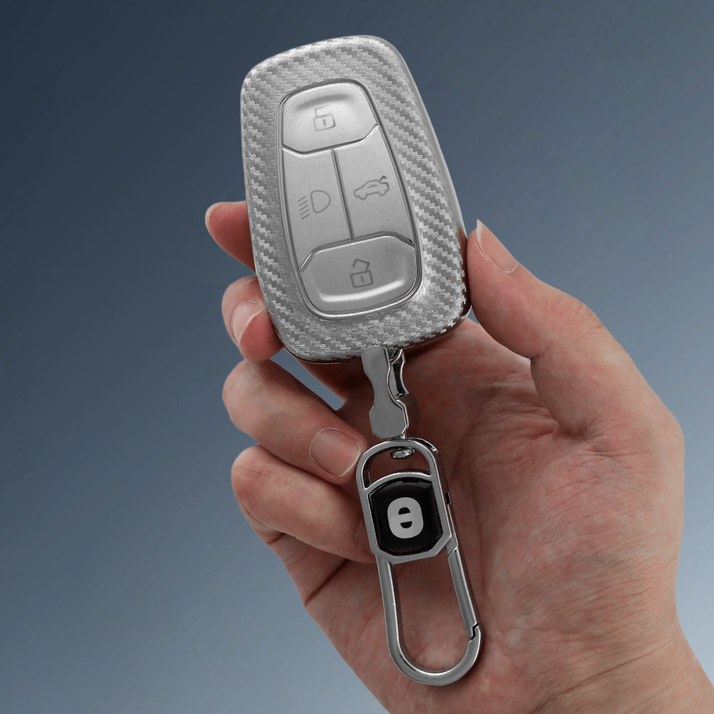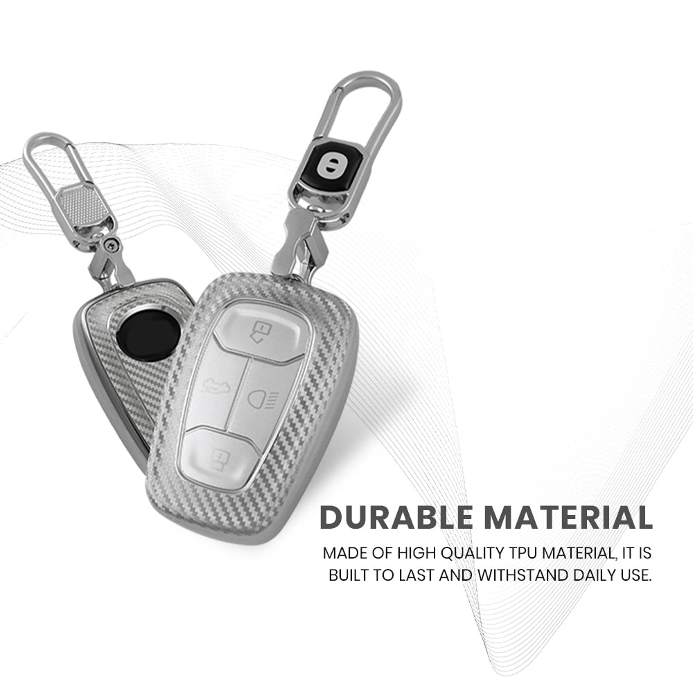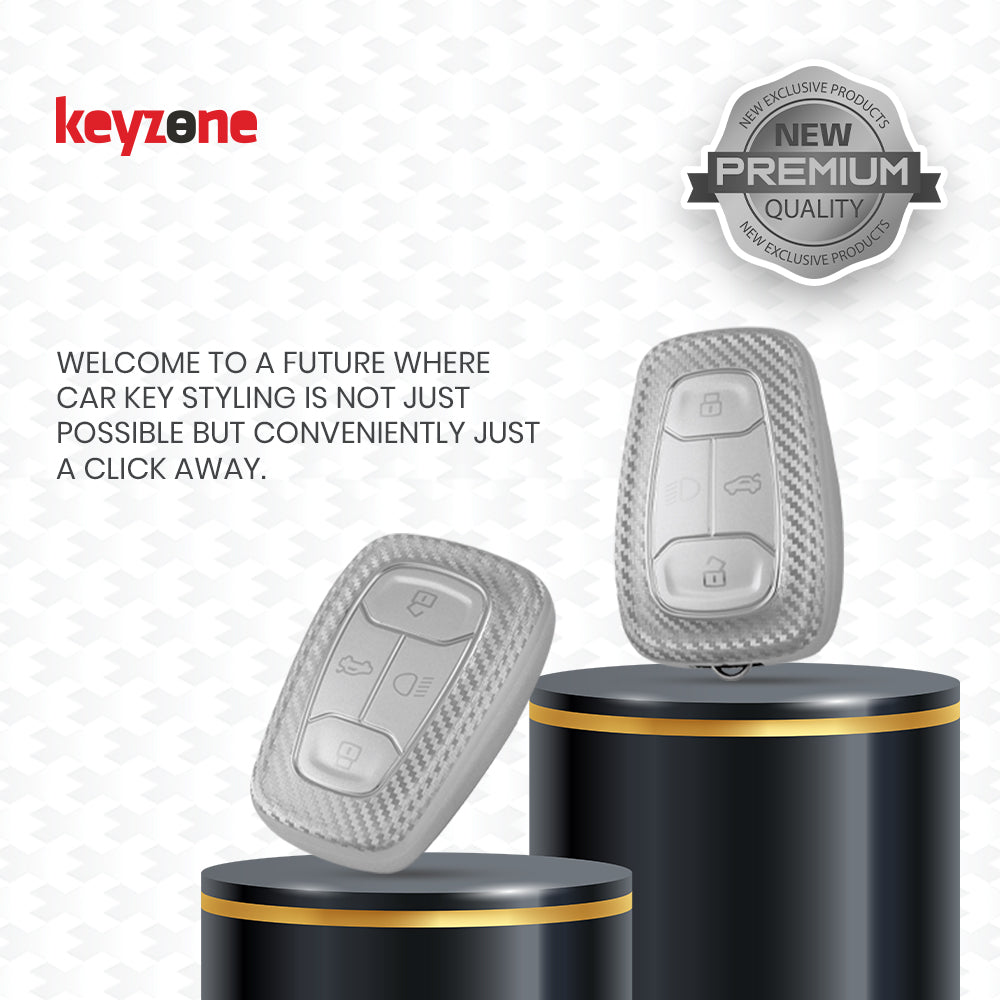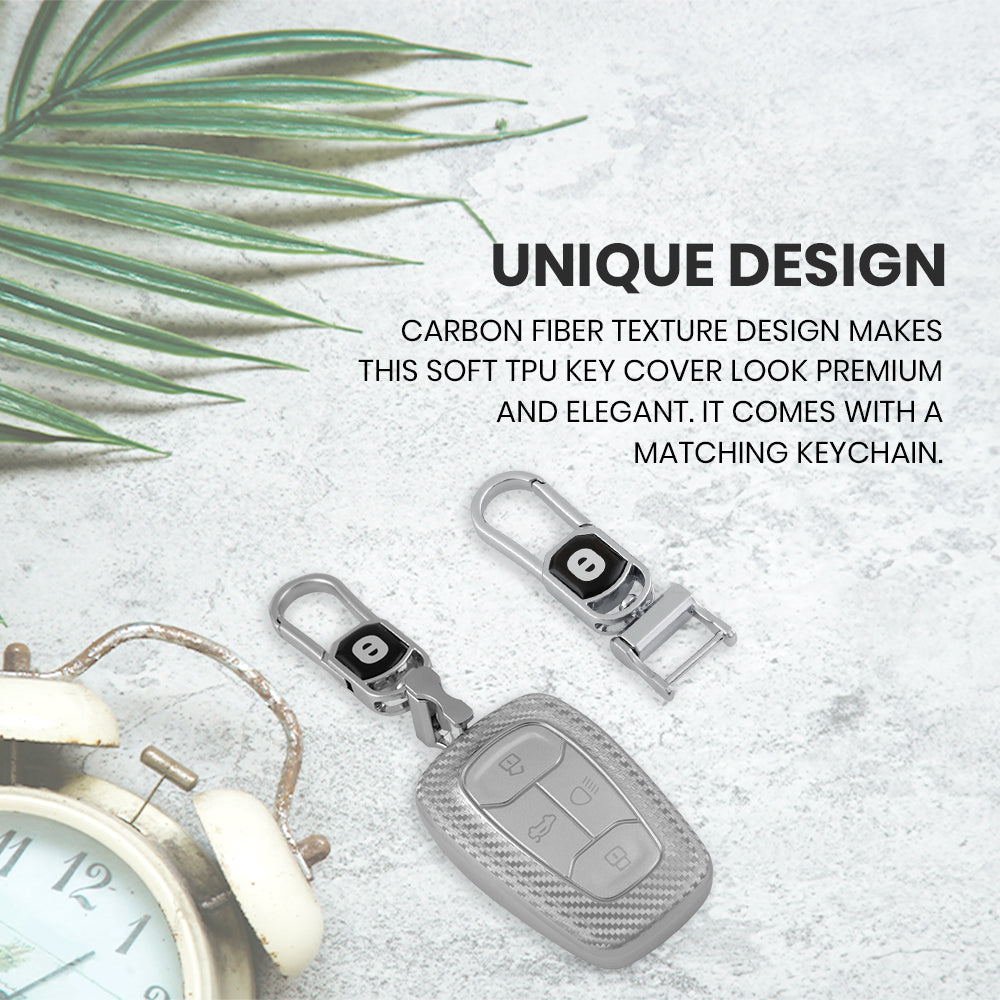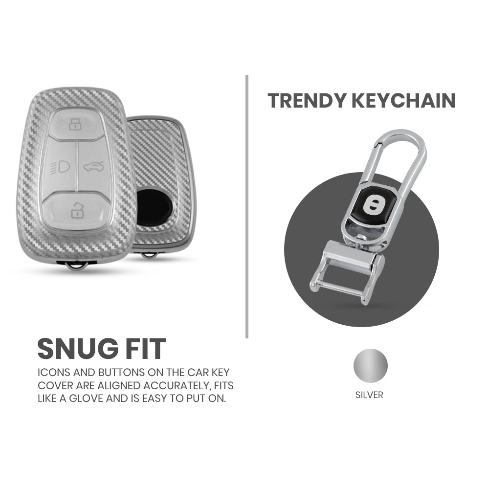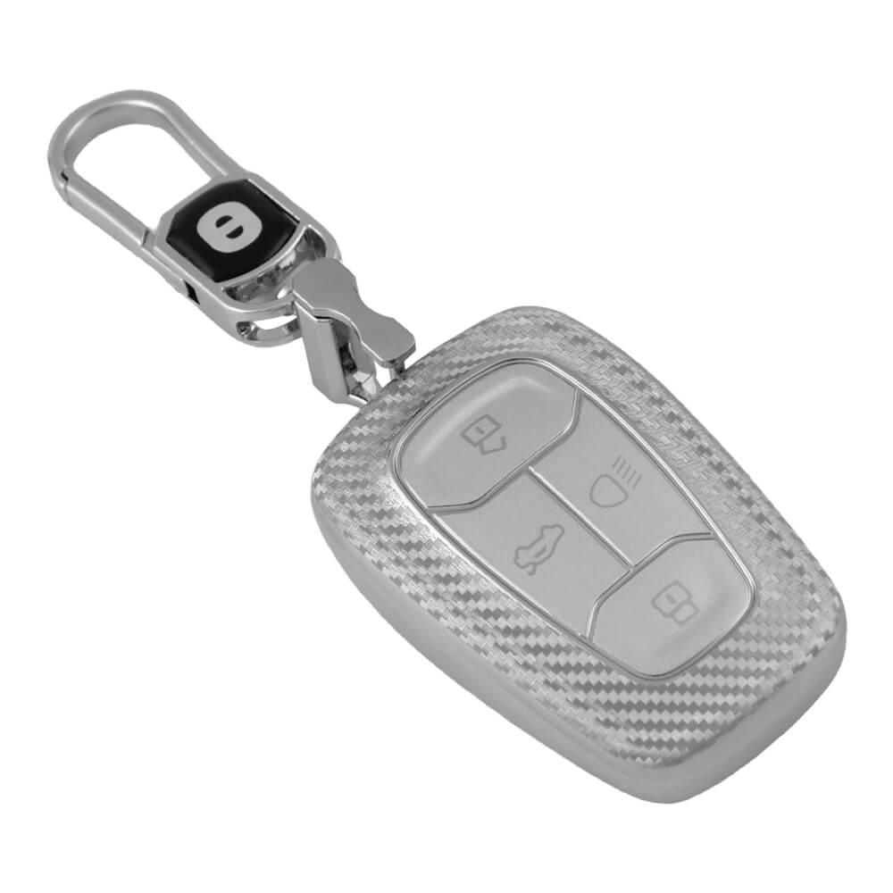 Keyzone silverstar TPU key cover & keychain for Nexon, Harrier, Altroz, Safari, Punch, Tigor smart key (SS08)