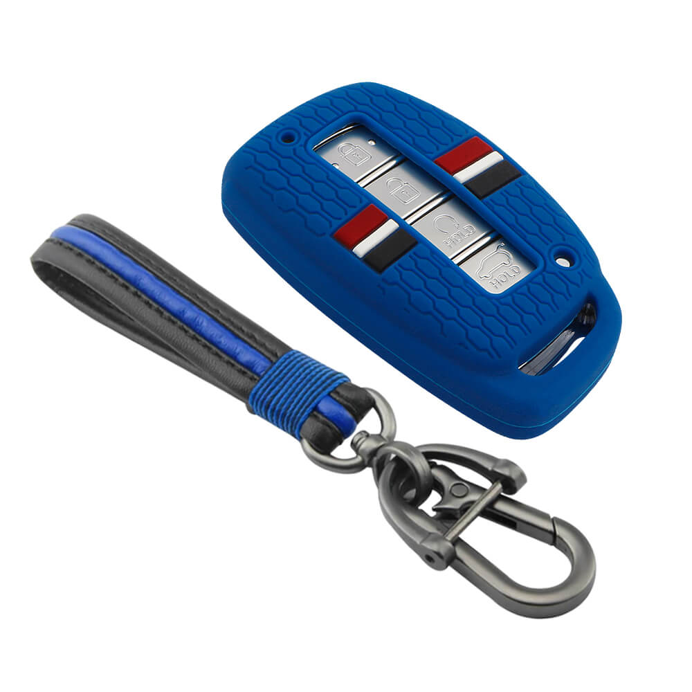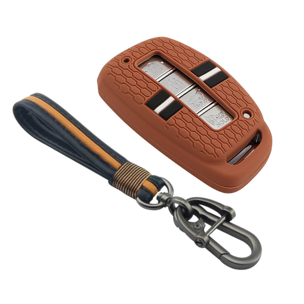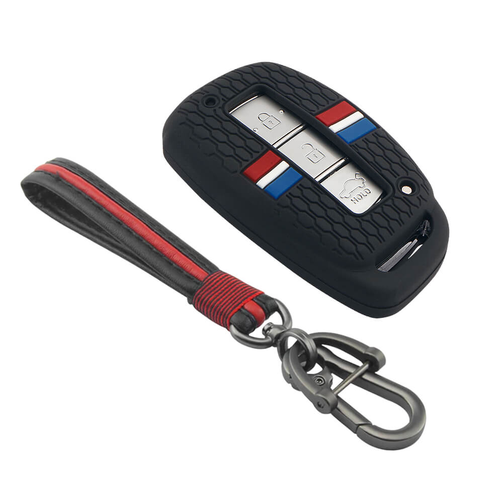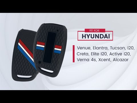 Keyzone striped key cover and keychain for Exter, Venue, Elantra, Tucson, I20, Creta, Elite I20, Active I20, Aura, Verna 4s, Xcent, Alcazar 3b/4b smart key (KZS18, FL Keychain)