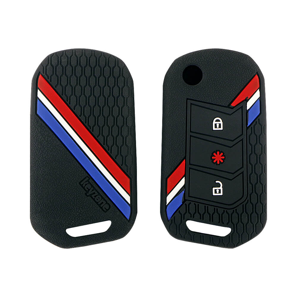 Keyzone striped key cover fit for Thar, Bolero, Scorpio, XUV700, XUV400, XUV3x0, XUV300, TUV300, Marazzo flip key (KZS-14)