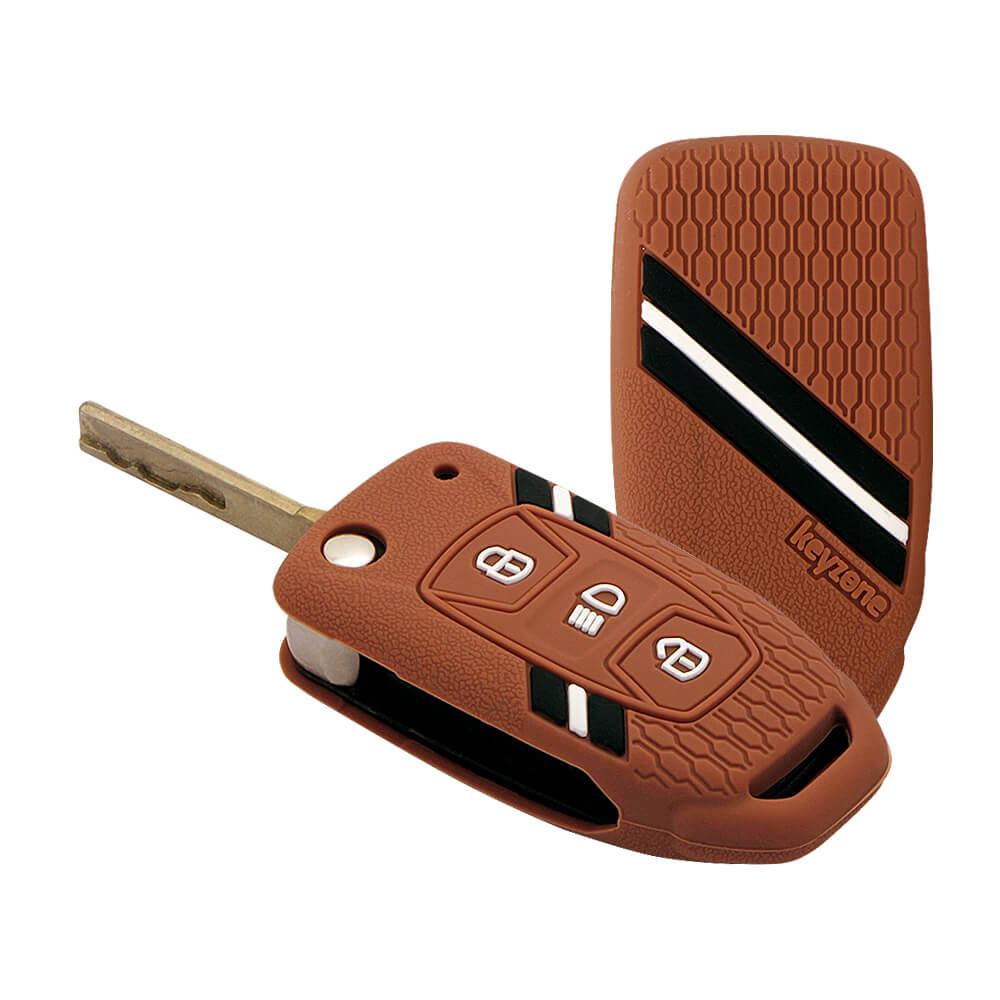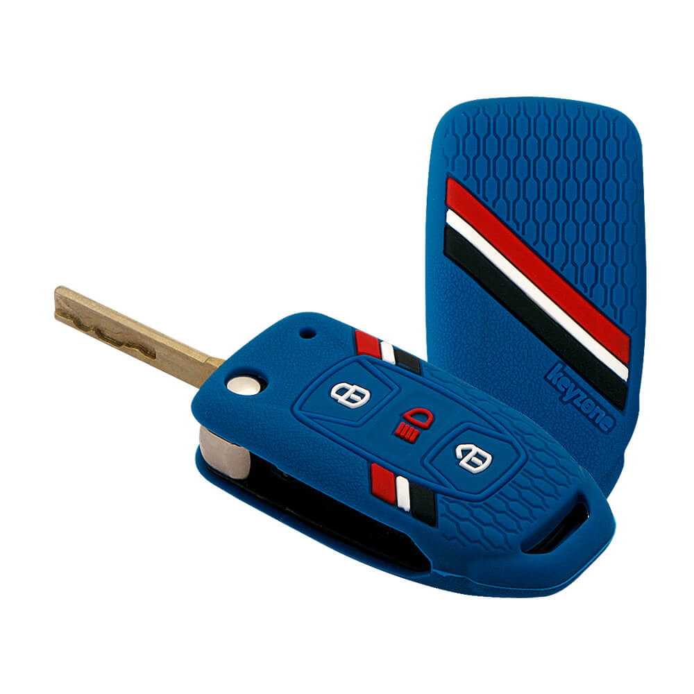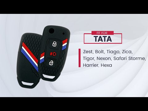 Keyzone striped key cover fit for : Tata Curvv, Nexon, Harrier, Safari, Altroz, Punch, Tigor, Tiago, Zest, Bolt, Hexa flip key (KZS-13)