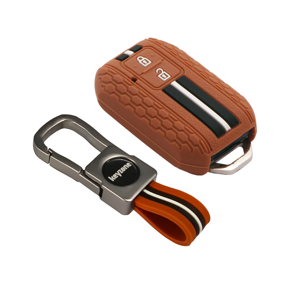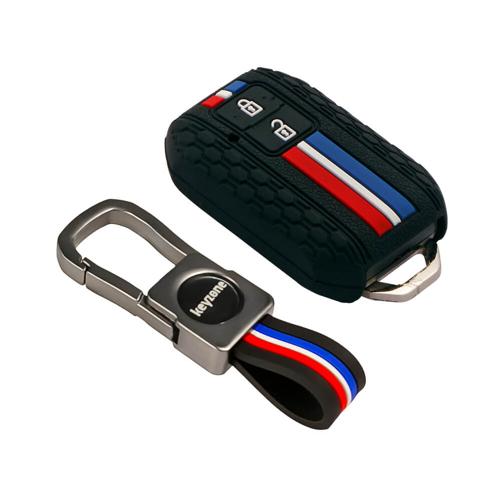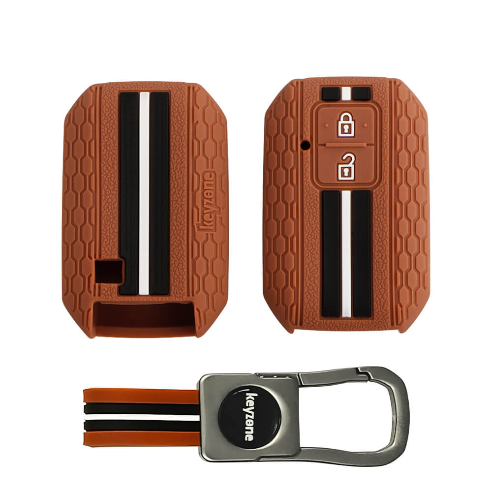 Keyzone striped key cover & metal striped keychain for Victoris, Swift, Baleno, Jimny, Fronx, Grand Vitara, Ertiga, DZire, Brezza, XL6, Ignis, Glanza, Urban Cruiser Hyryder 2b smart key(KZS-01,KZMTKC)