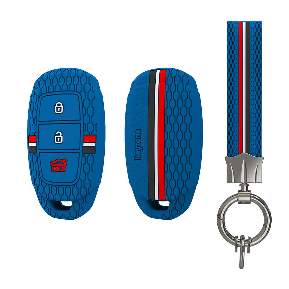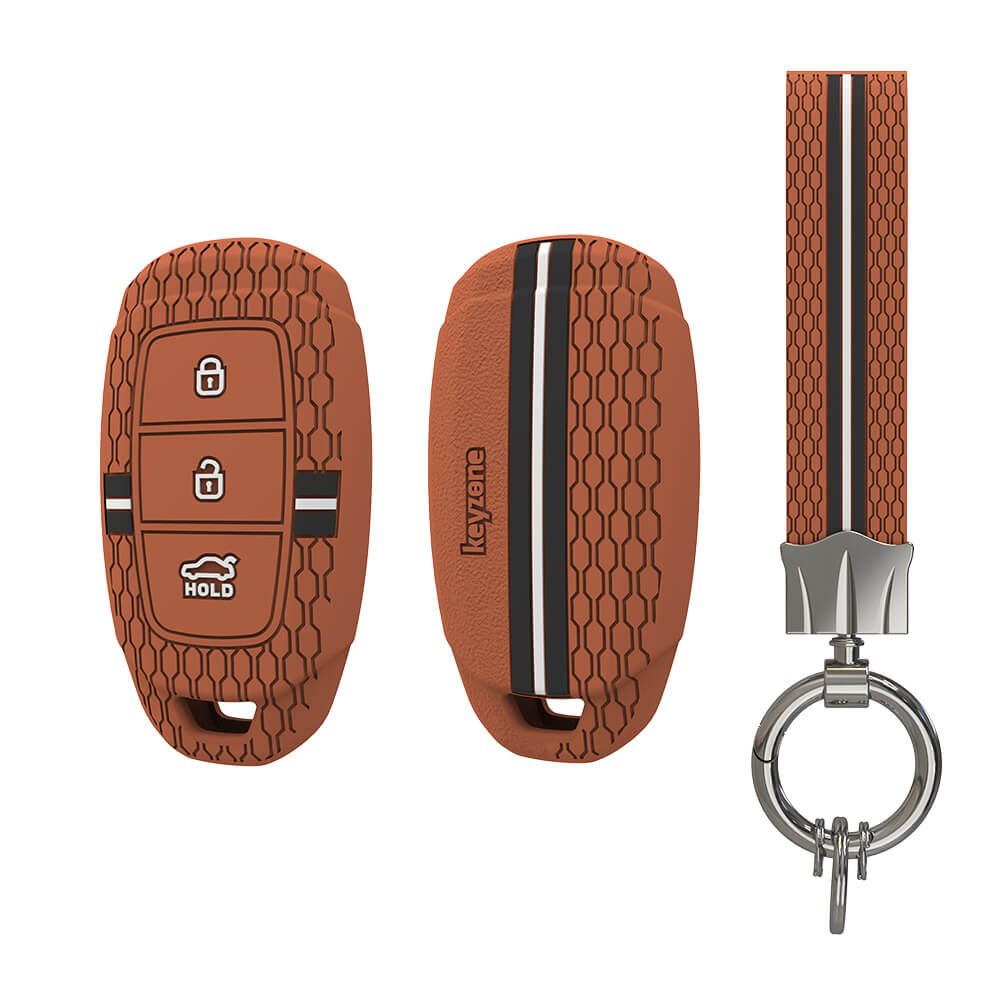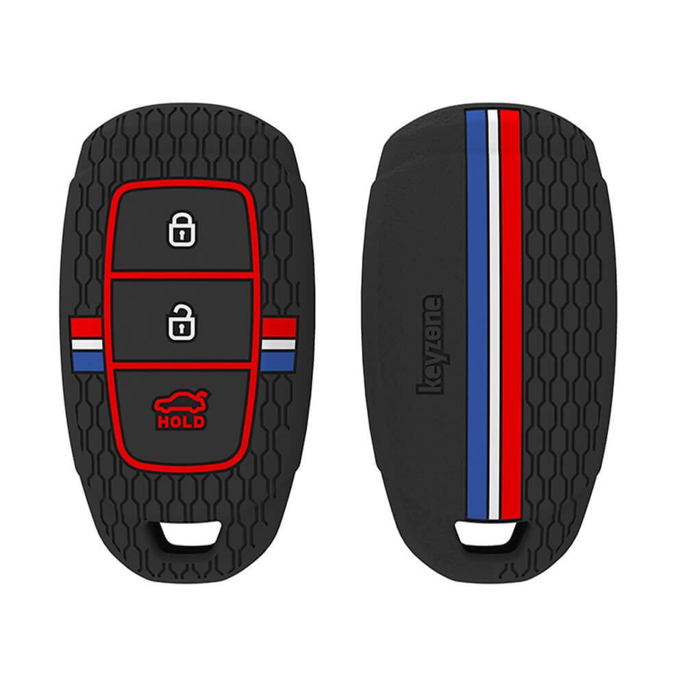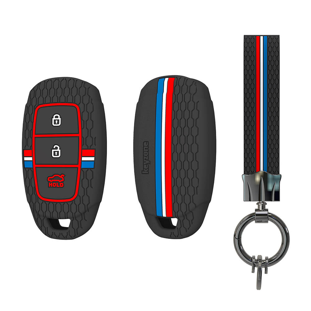 Keyzone striped silicone key cover & keychain for i20, Kona, Verna 3 button smart key (KZS-22, KZS Keychain)