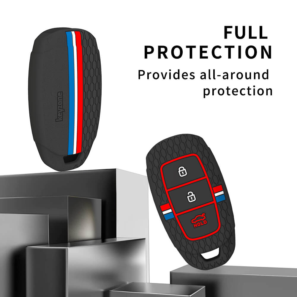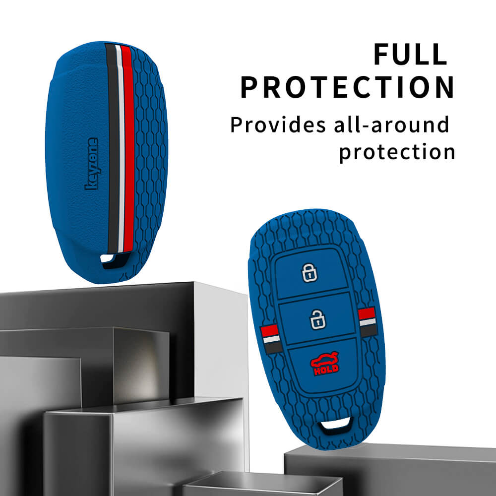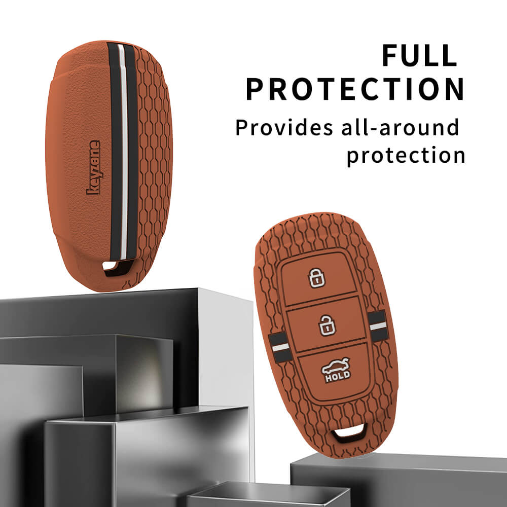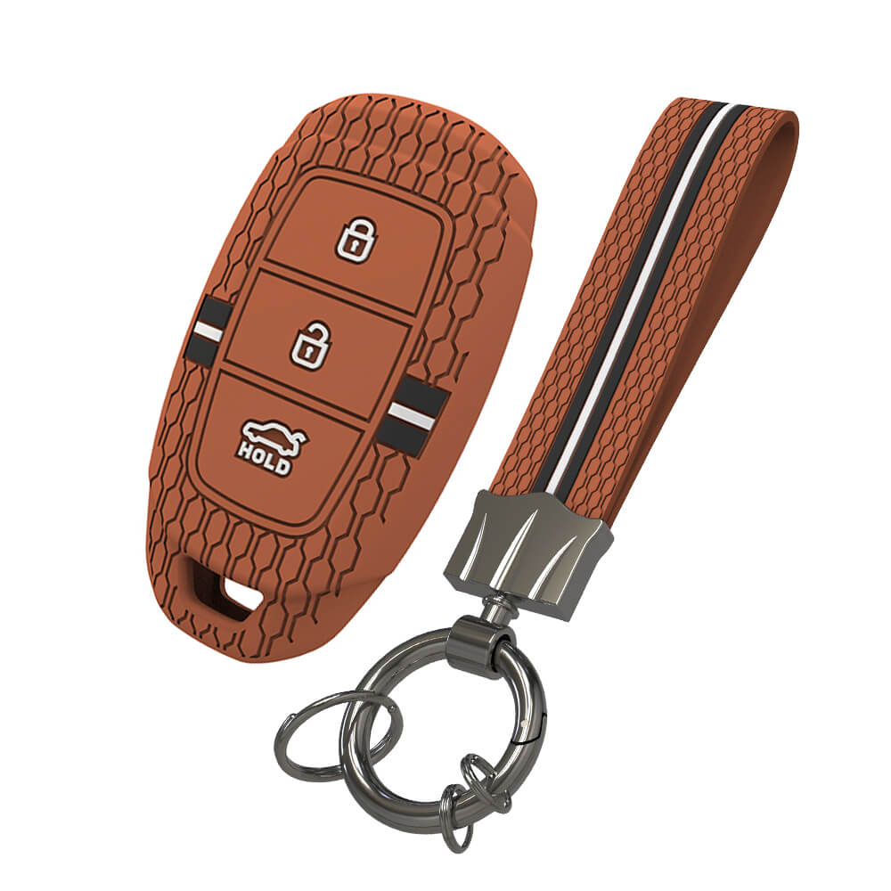 Keyzone striped silicone key cover & keychain for i20, Kona, Verna 3 button smart key (KZS-22, KZS Keychain)