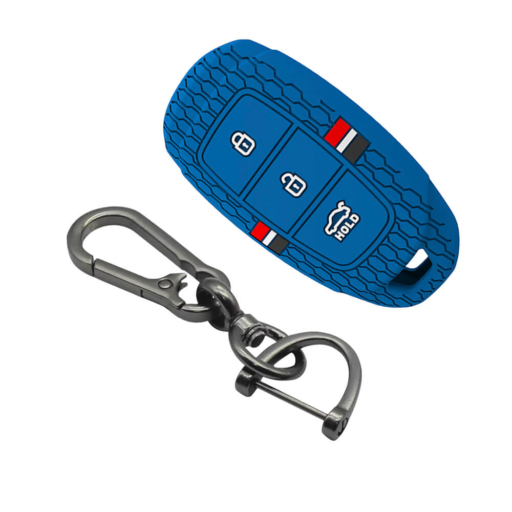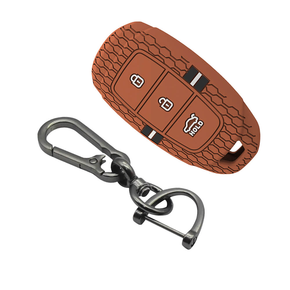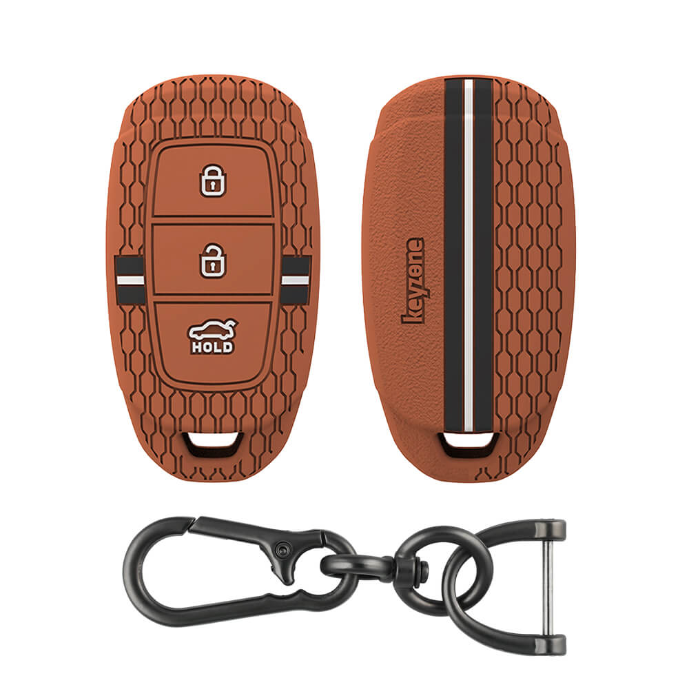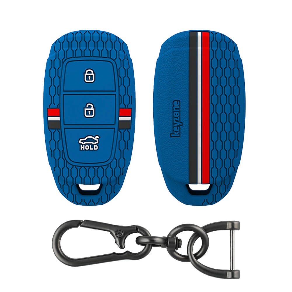 Keyzone striped silicone key cover & keychain for i20, Kona, Verna 3 button smart key (KZS-22, ZincAlloy)