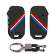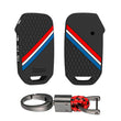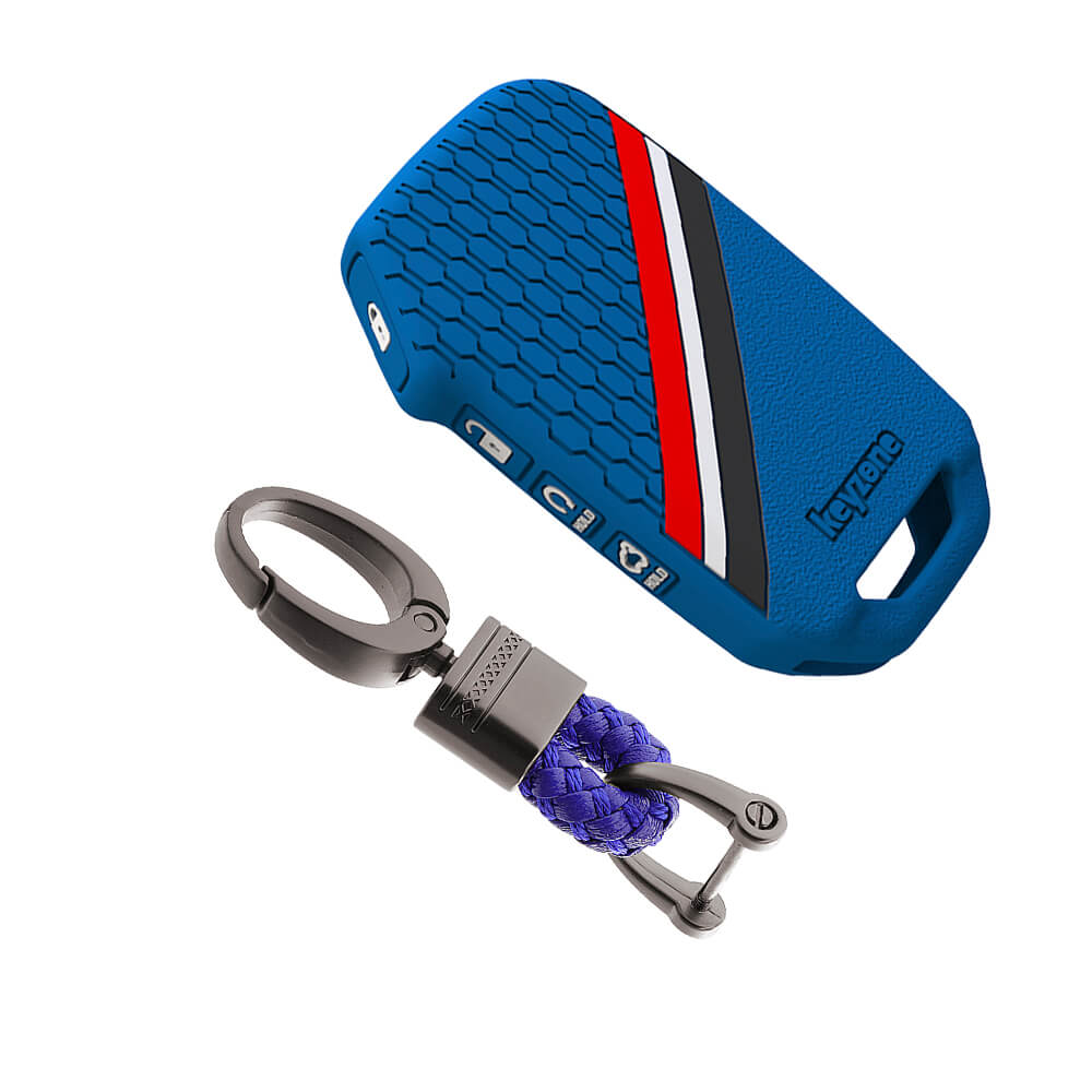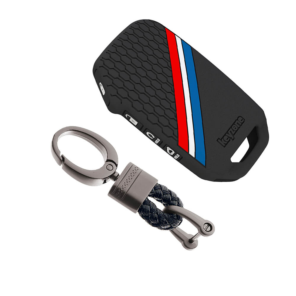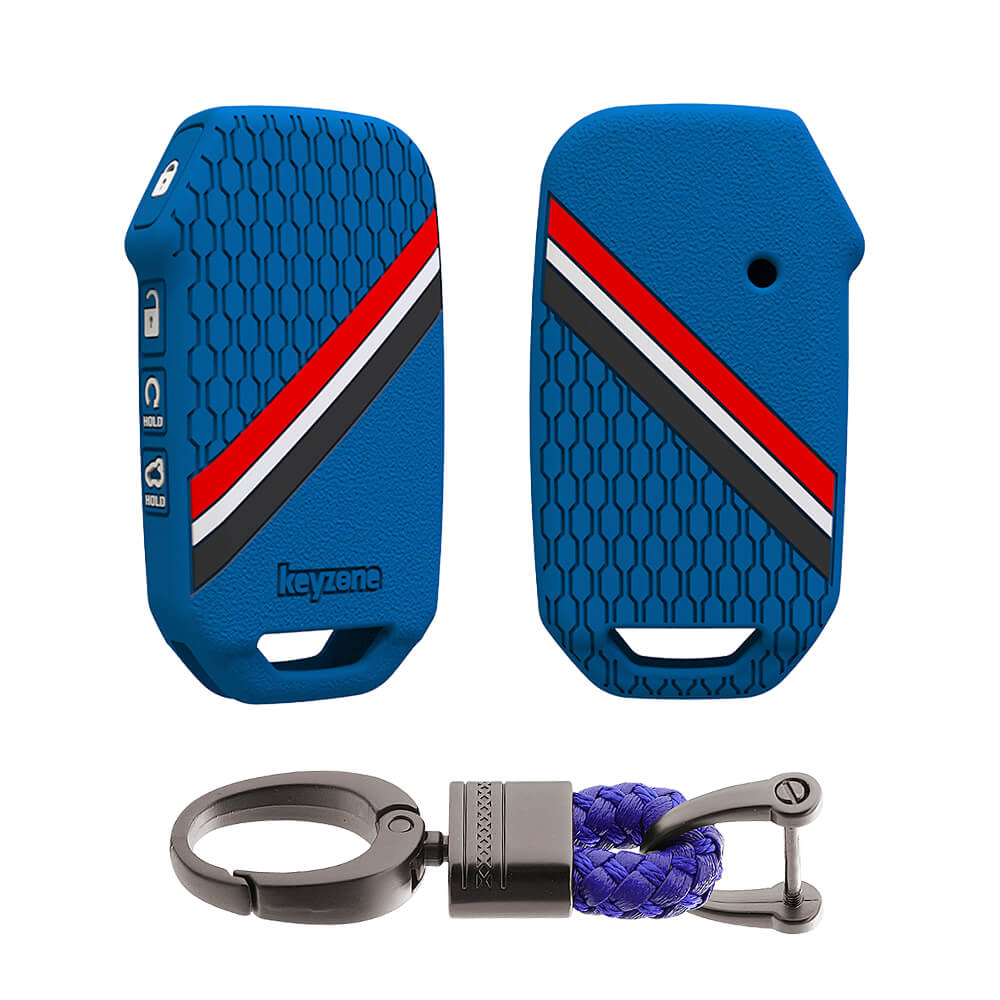 Keyzone striped silicone key cover & keychain for Kia Carens Clavis, Seltos, Sonet 2023 onwards 4 button smart key (KZS-21, Alloy Keychain)