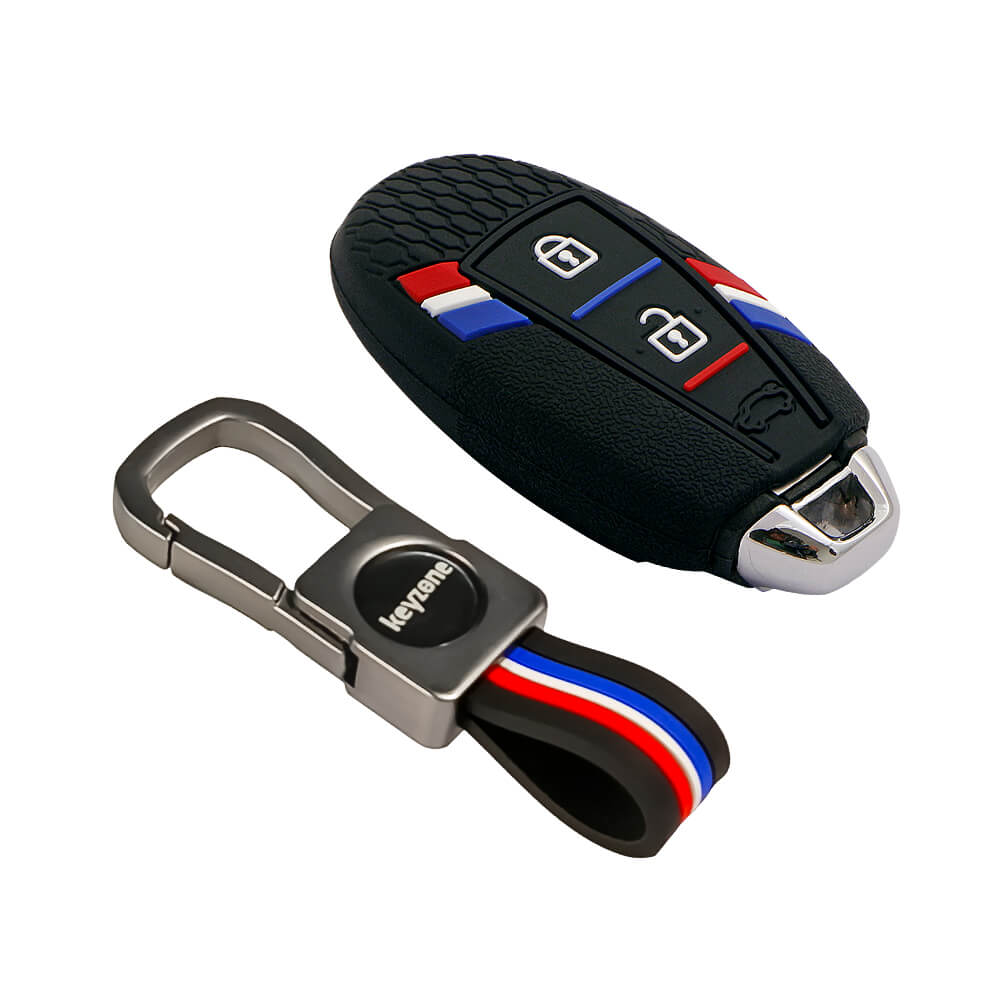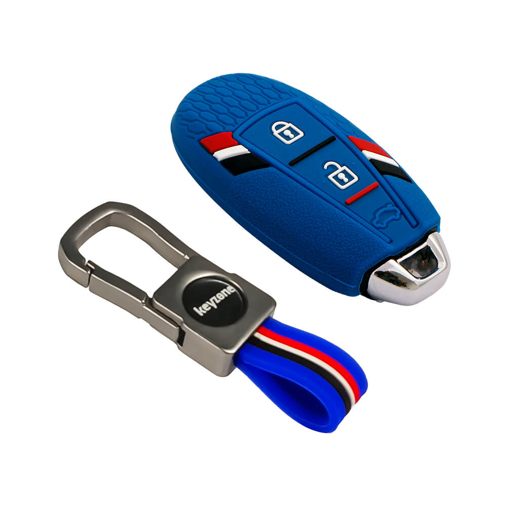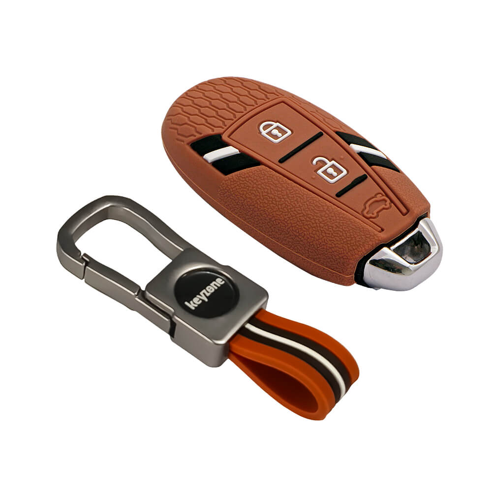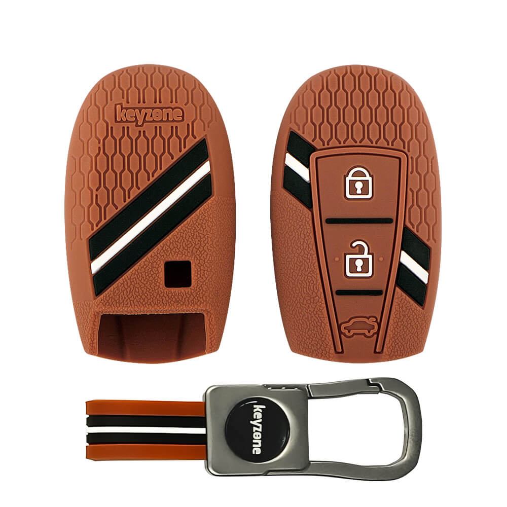 Keyzone Striped Silicone Key Cover & metal striped keychain for Ciaz, Baleno, SCross, Vitara Brezza, Urban Cruiser 3 Button Smart Key (KZS-12,KZMTKC)