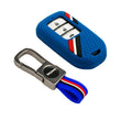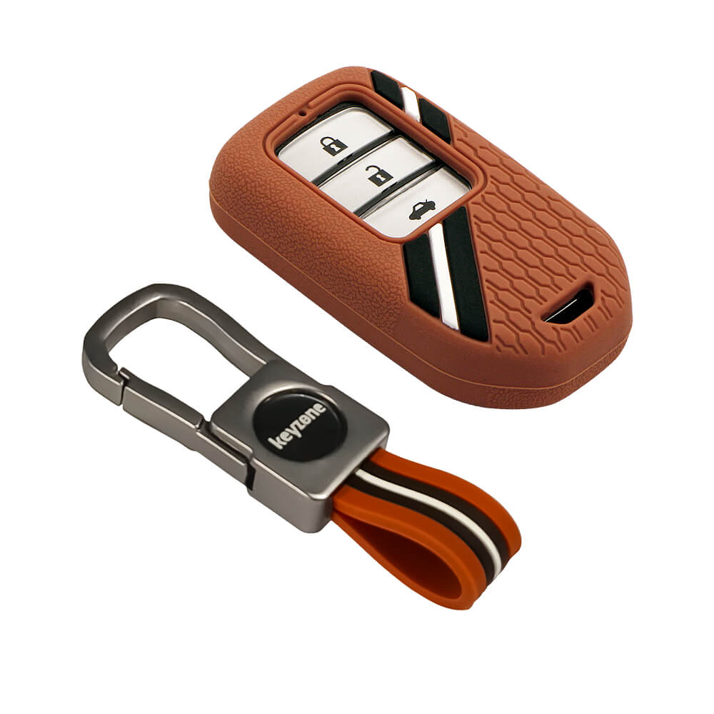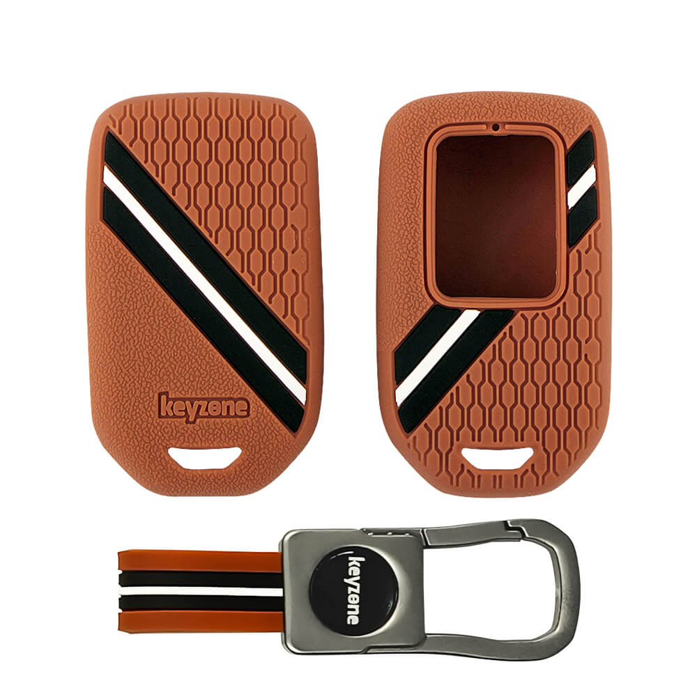Keyzone striped silicone key cover & metal striped keyring for Honda Elevate, City, Civic, Jazz, Amaze, CRV, BRV, WRV, Accord, Mobilio Smart Key (KZS-15,KZMTKC)