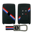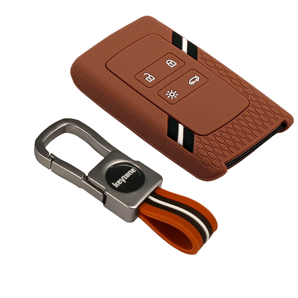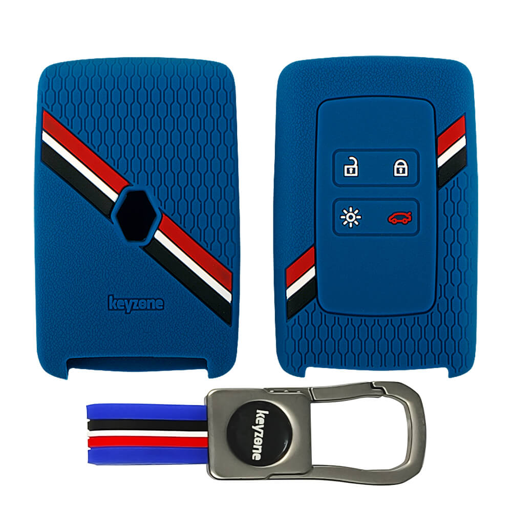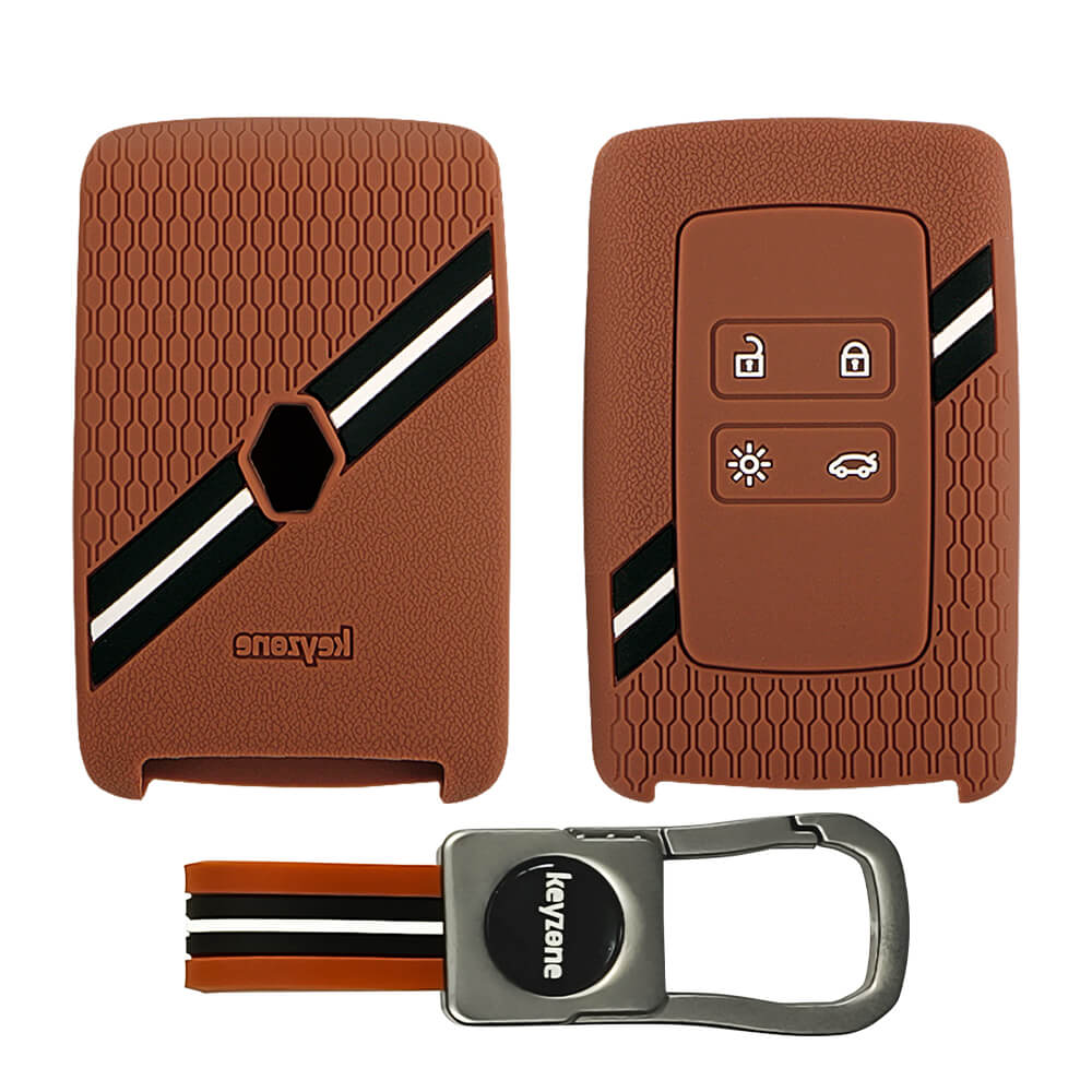 Keyzone striped silicone key cover & metal striped keyring for Renault Triber, Kiger Smart Card (KZS-16,KZMTKC)
