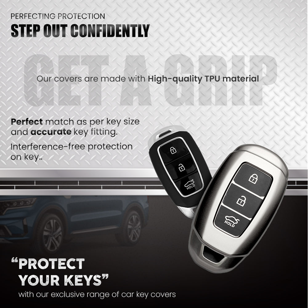 Keyzone TPU car Key Cover for Hyundai i20, Verna, Kona 3 Button Smart Key (GMTP41)