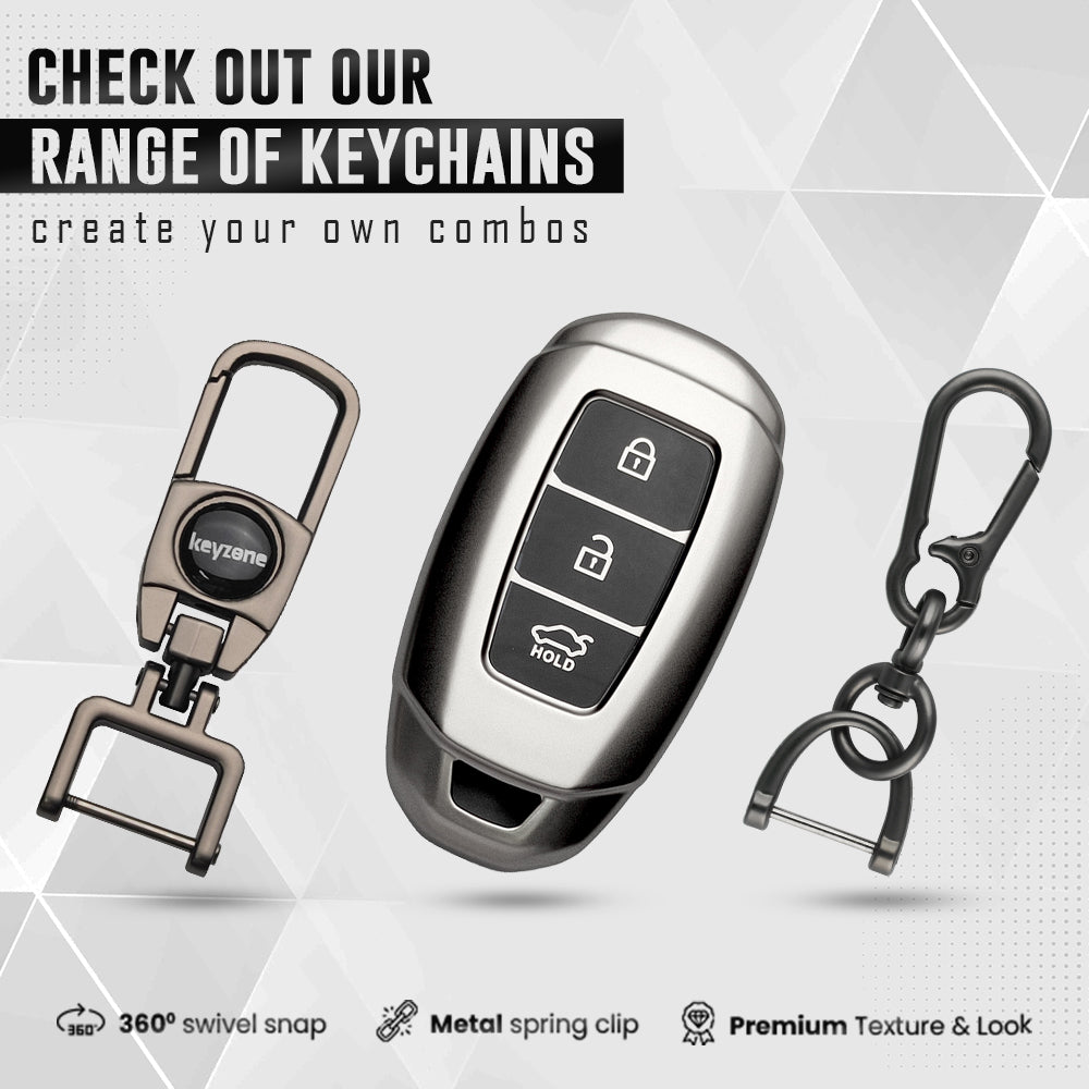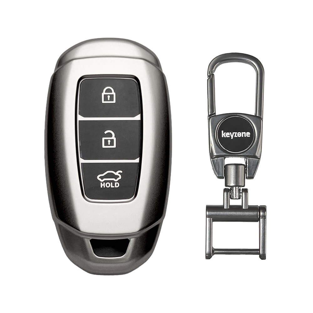 Keyzone TPU car Key Cover & metal alloy key holder for Hyundai i20, Verna, Kona 3 Button Smart Key (GMTP41, MAH KeyHolder)