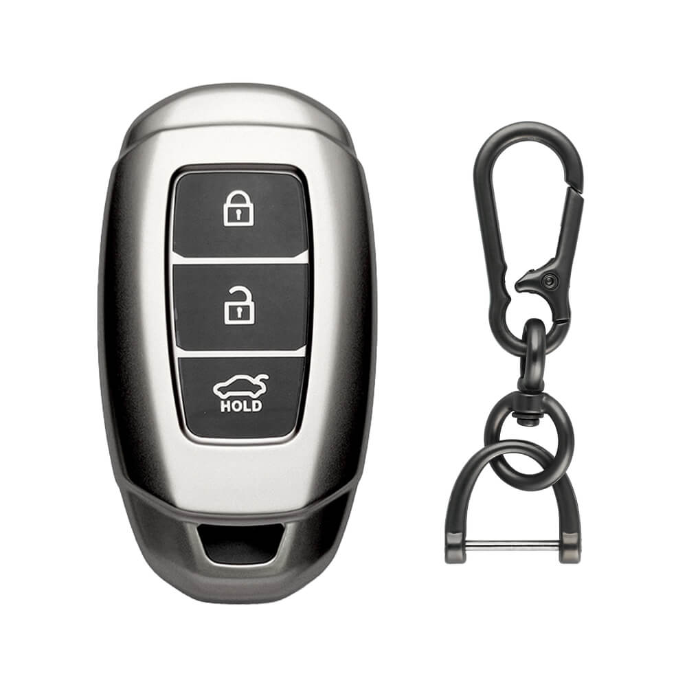 Keyzone TPU car Key Cover & zinc alloy key holder for Hyundai i20, Verna, Kona 3 Button Smart Key (GMTP41, zinc alloy)