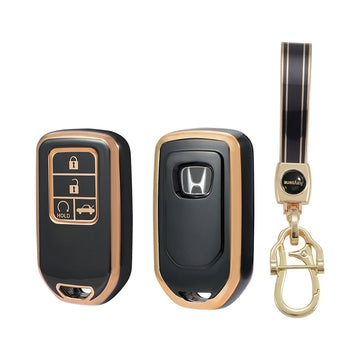 Keyzone TPU Key Cover and Keychain For Honda : City, Civic, Jazz, Brio, Amaze, Cr-v, Wr-v, Br-v, Mobilio 4B Smart Key (TP24)