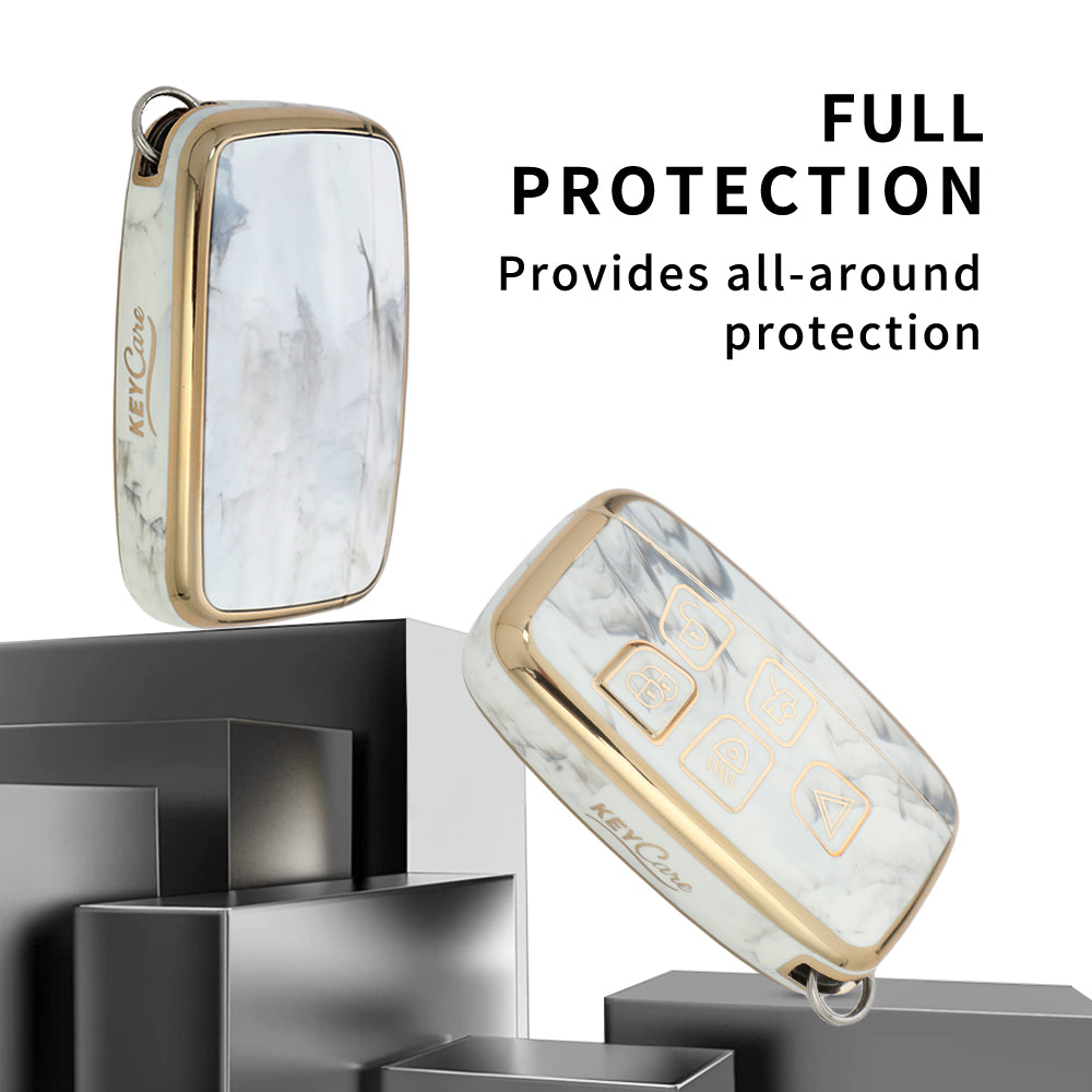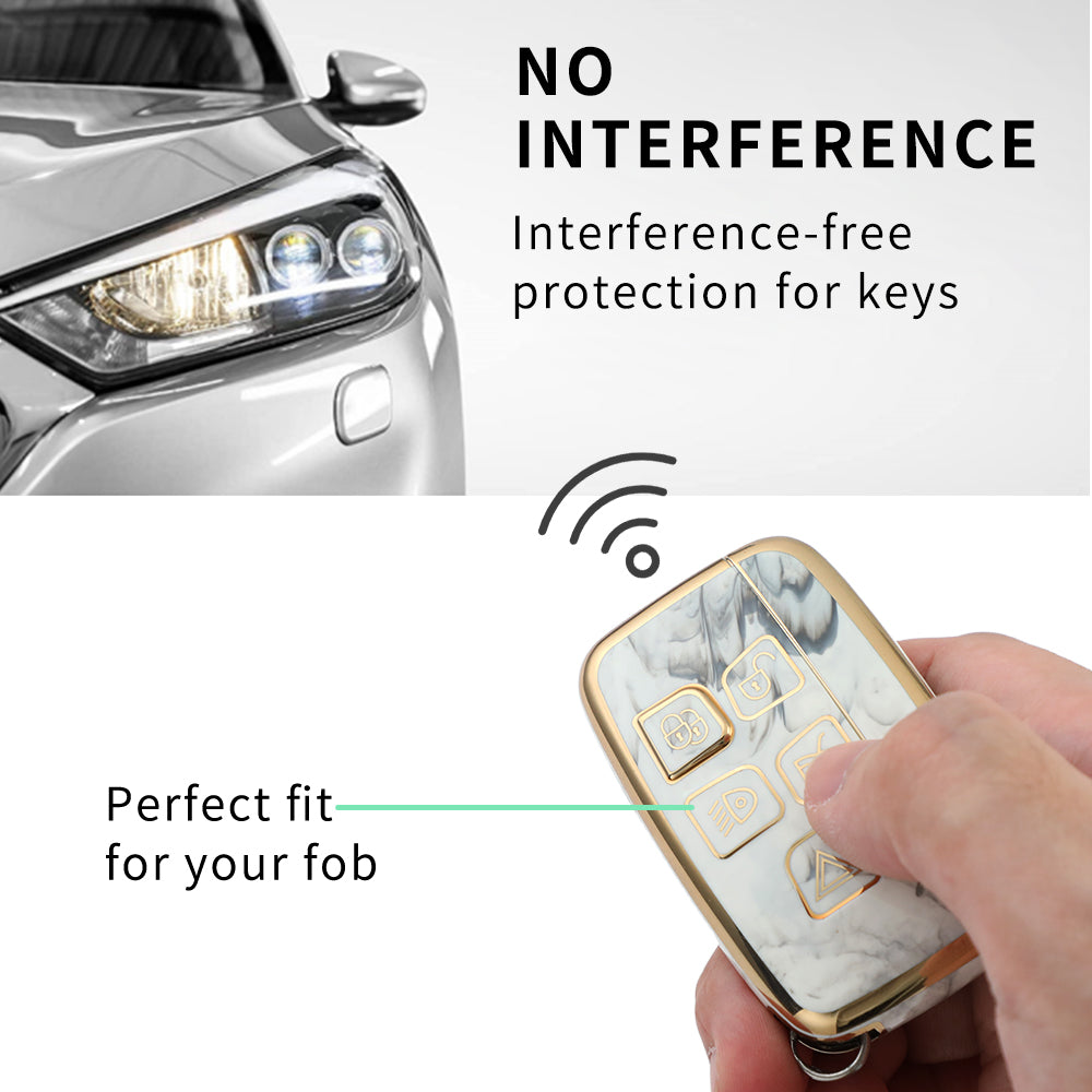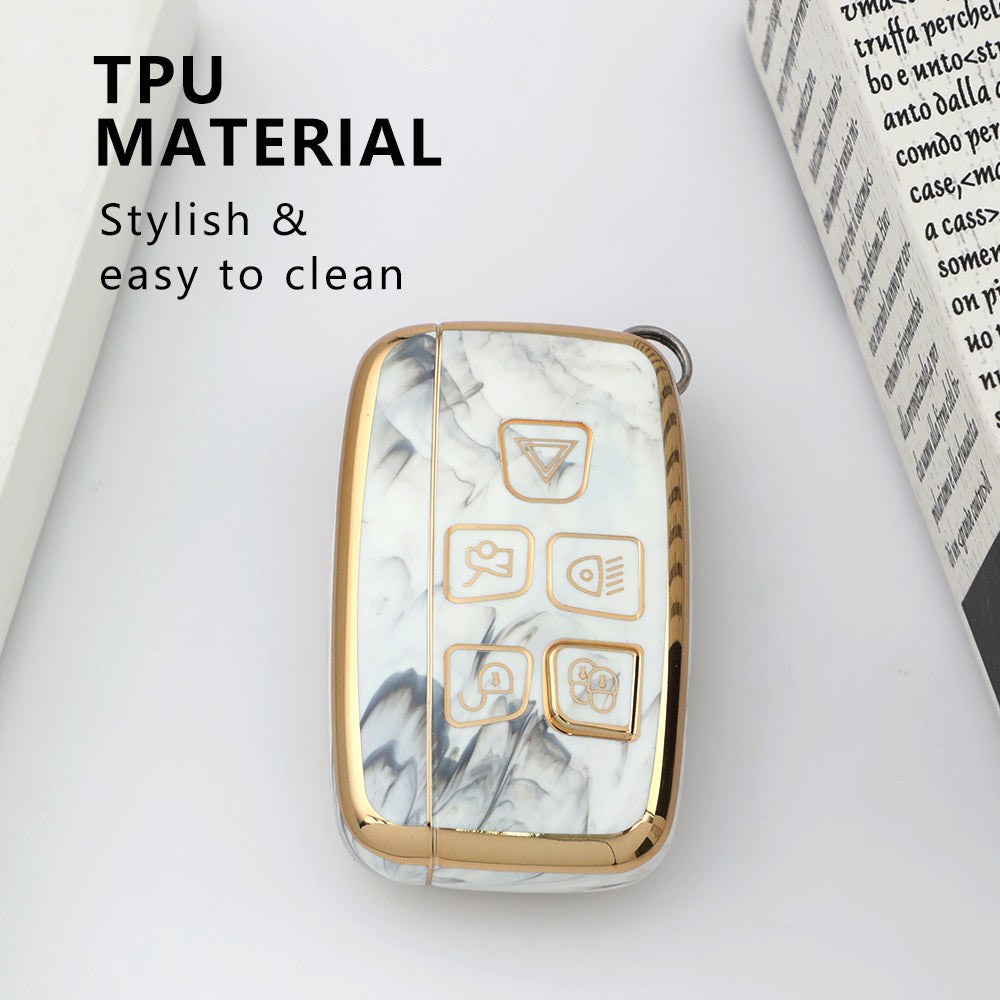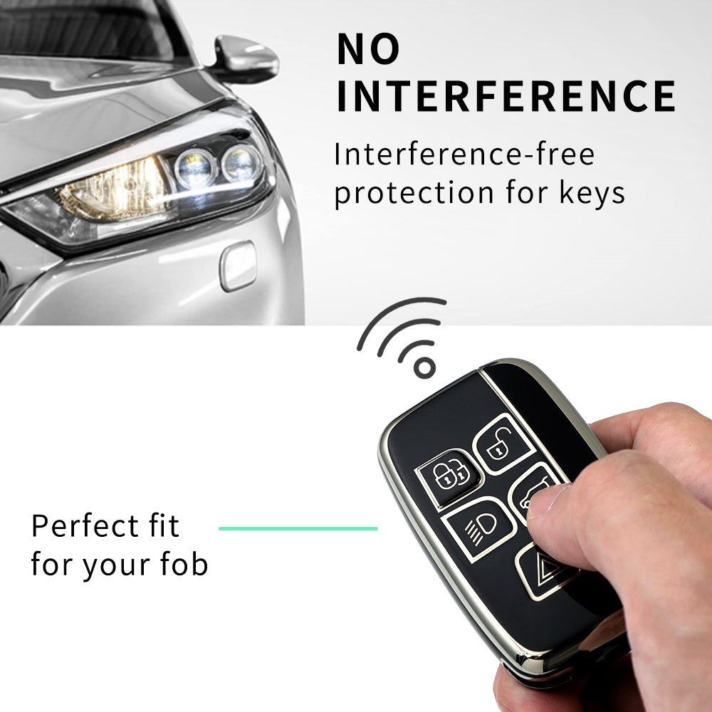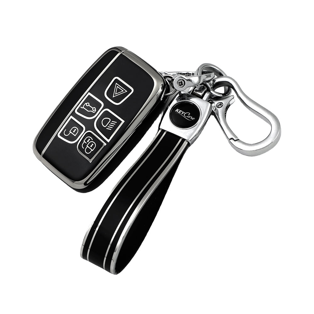 Keyzone TPU Key Cover and Keychain For Jaguar/Range Rover : Evoque Velar Discovery LR4 Land Rover Sport XF XJ XE F-PACE F-Type 5 Button Smart Key (TP72)