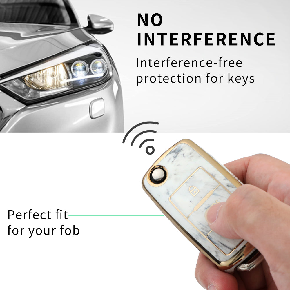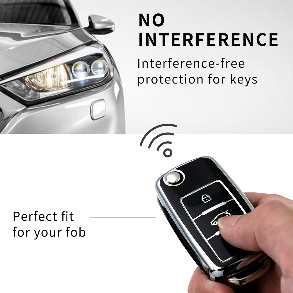 Keyzone TPU Key Cover and Keychain For Volkswagen : Polo, Vento, Jetta, Ameo 3 Button Flip Key (TP13)