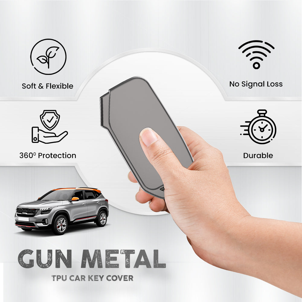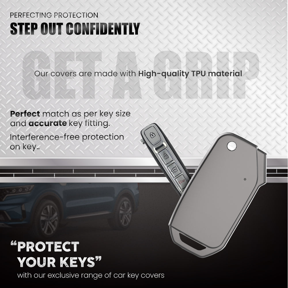 Keyzone TPU key Cover & zinc alloy key holder for for Seltos, Sonet, Carens, Carens Clavis 3\4 button flip key (GMTP78, zinc alloy)