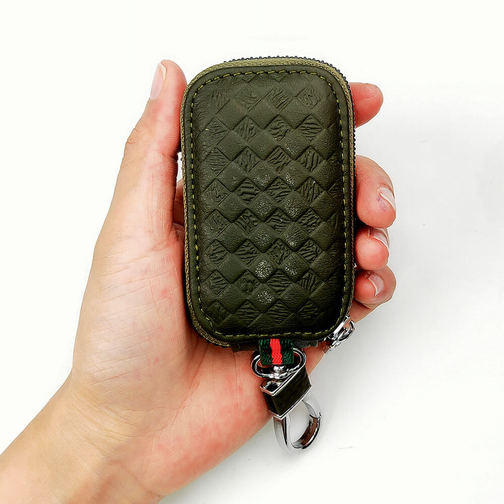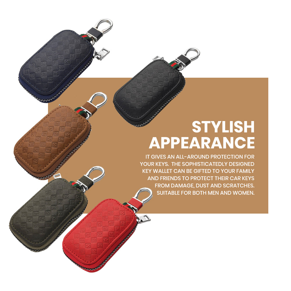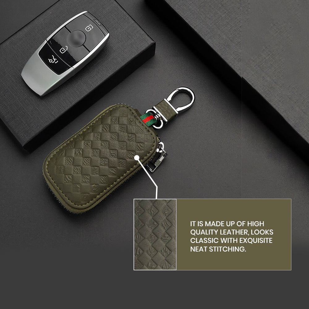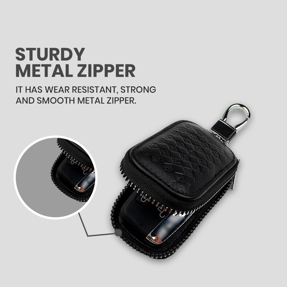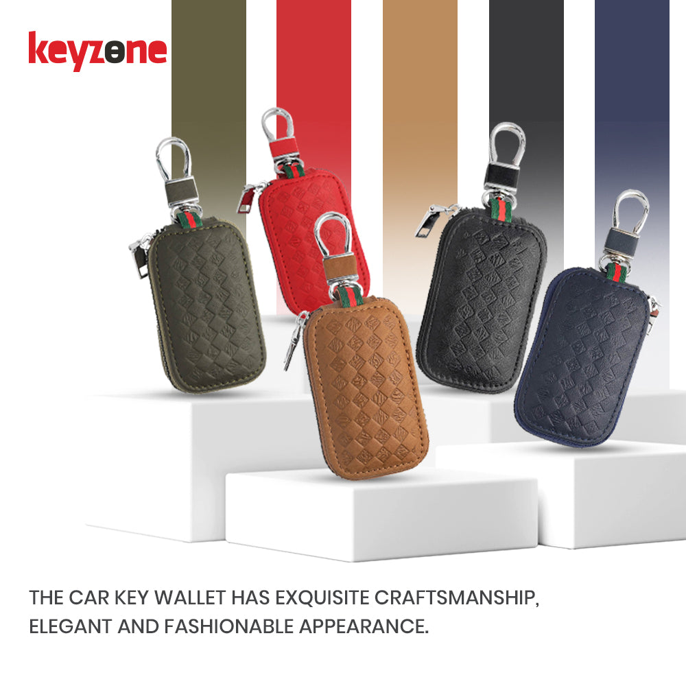 Keyzone Unisex Mens Womens Premium Quilted Pattern Leather Car Key Holder Bag Keychain Case Wallet with Zipper Closure (KW06)