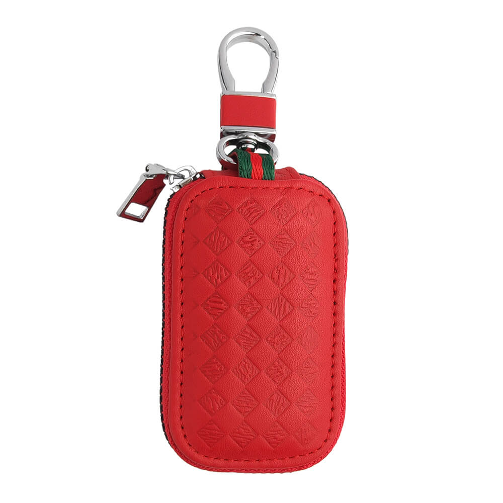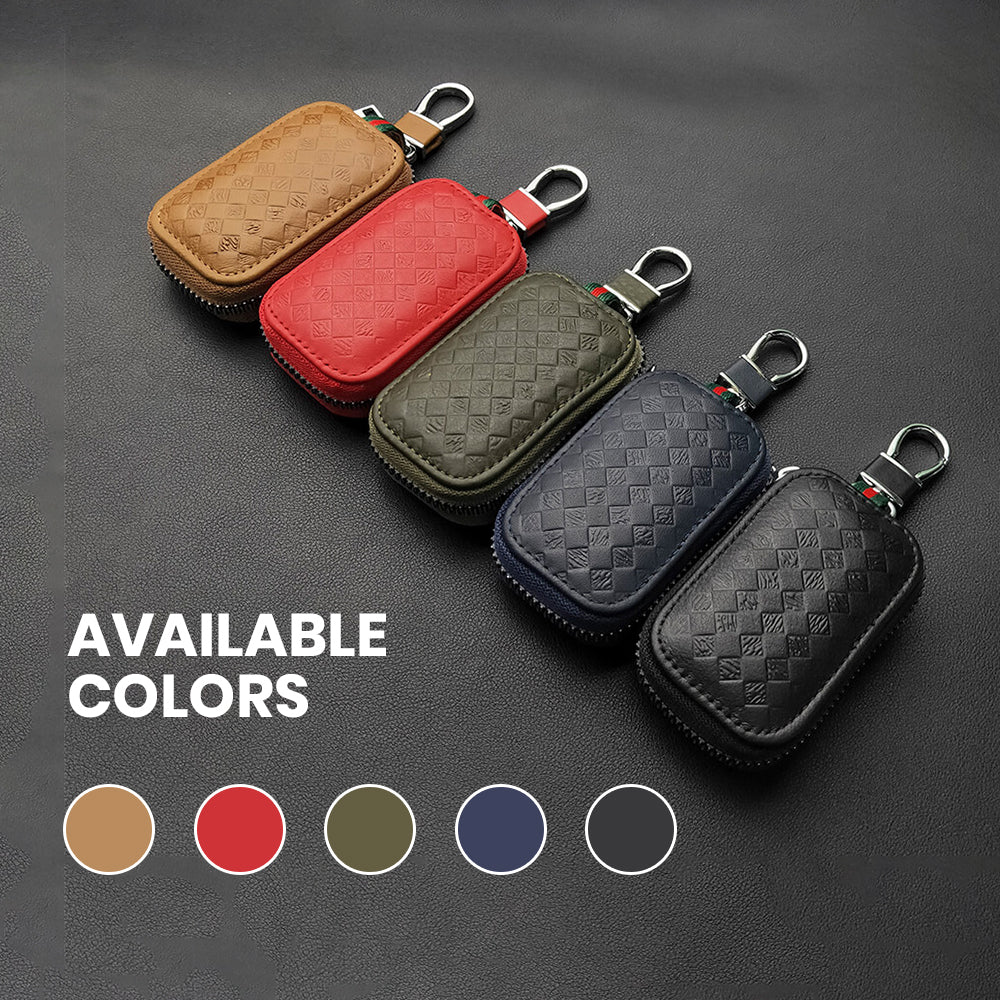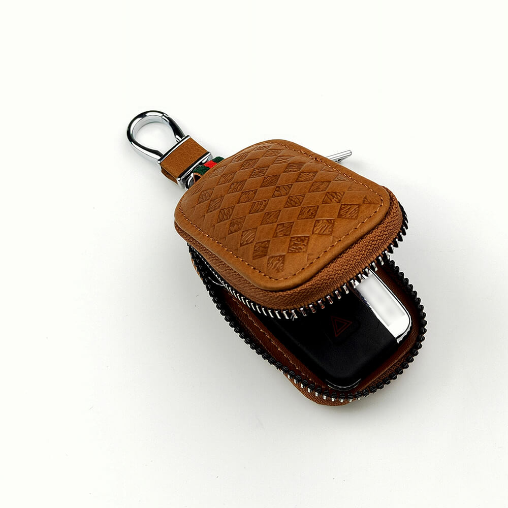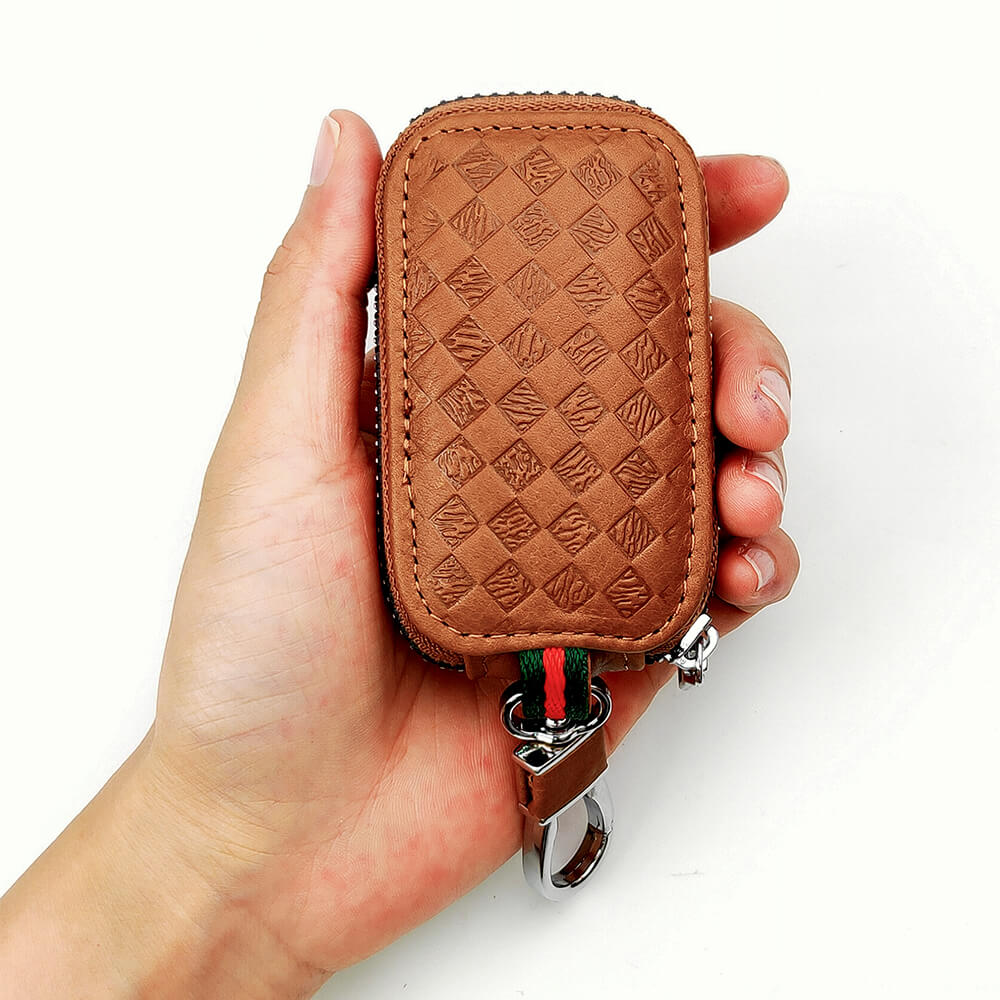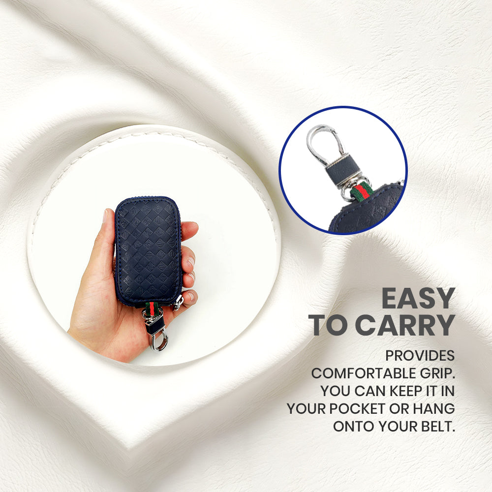 Keyzone Unisex Mens Womens Premium Quilted Pattern Leather Car Key Holder Bag Keychain Case Wallet with Zipper Closure (KW06)