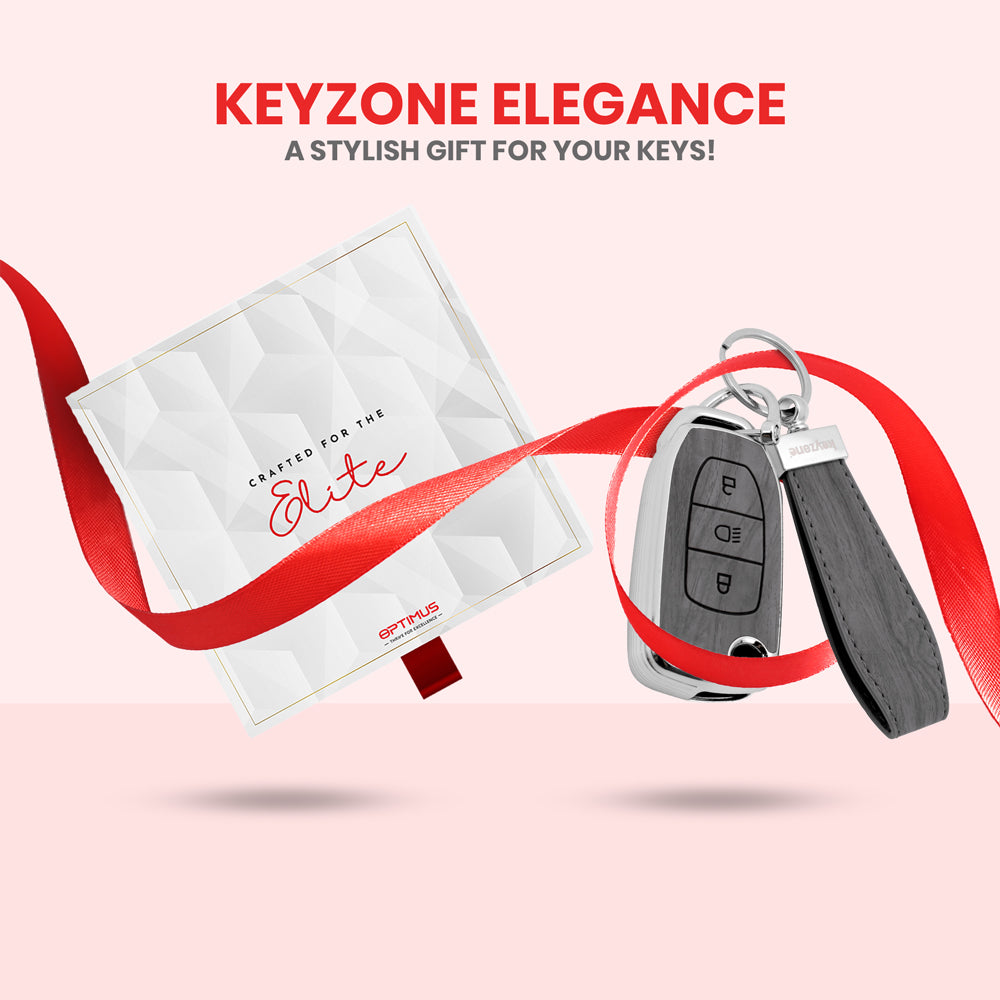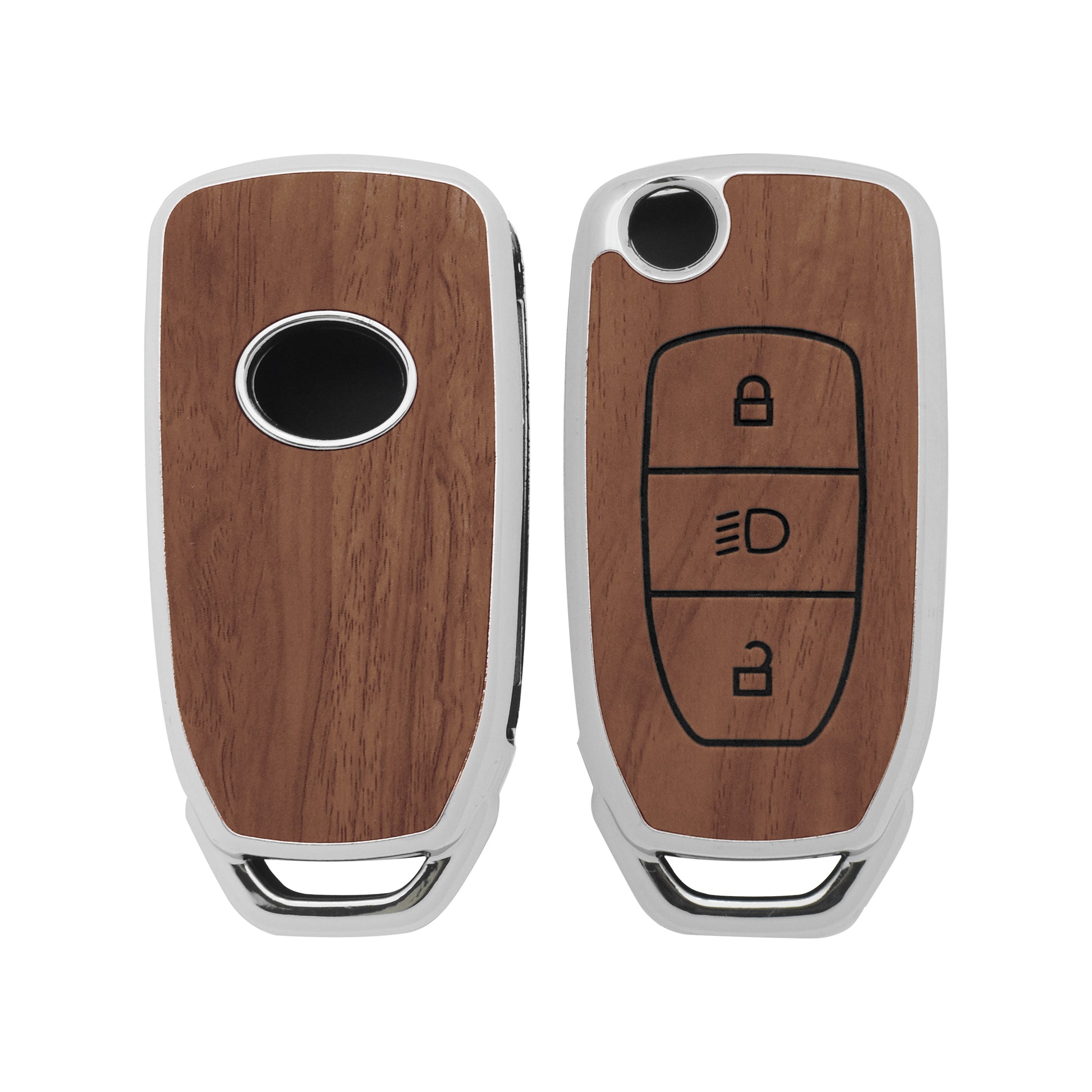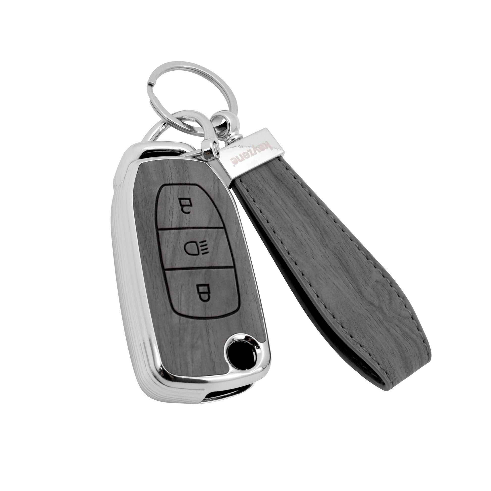 Keyzone woodgrain TPU key cover & keychain for Curvv, Nexon, Harrier, Safari, Altroz, Punch, Tiago, Tigor flip Key (WDTP29)