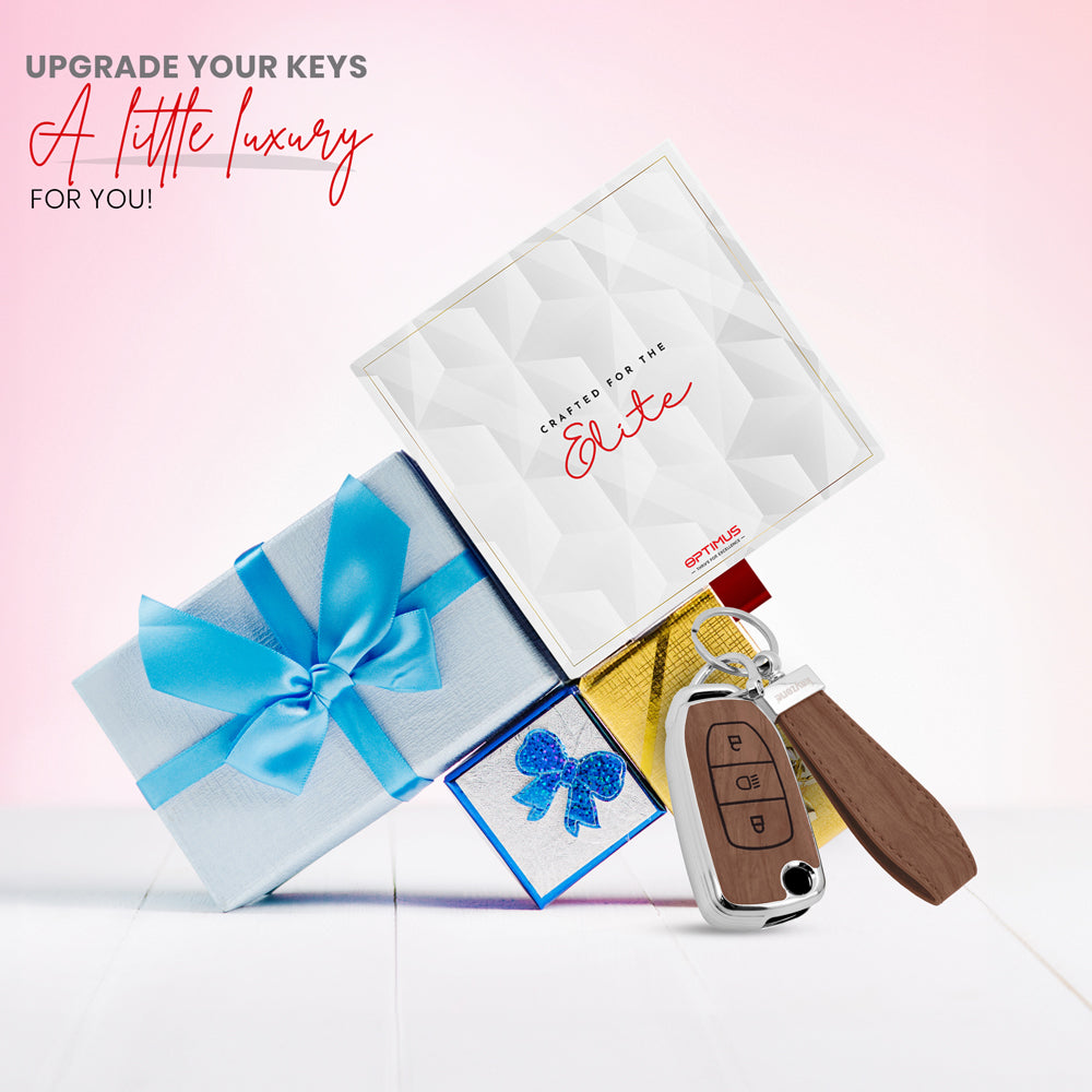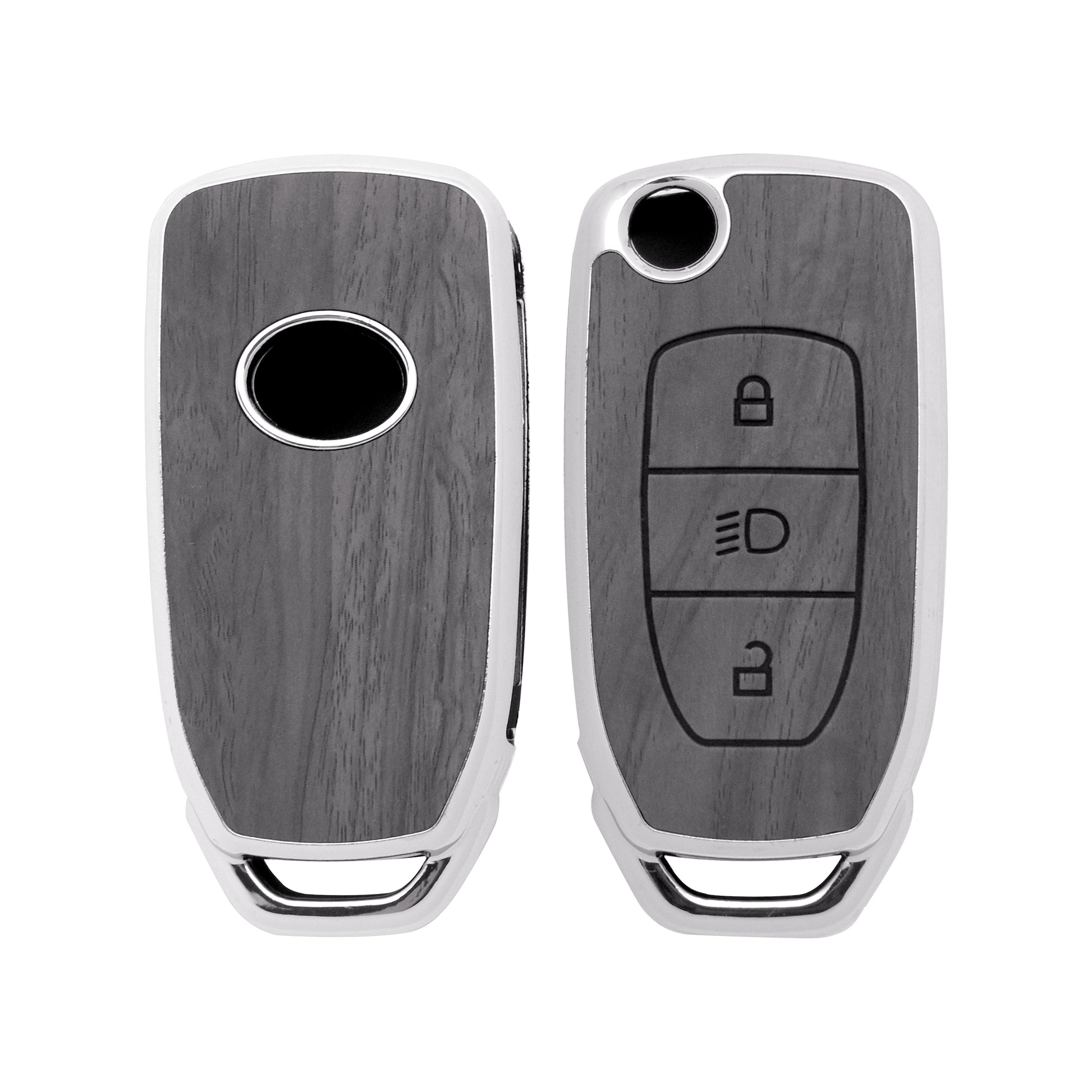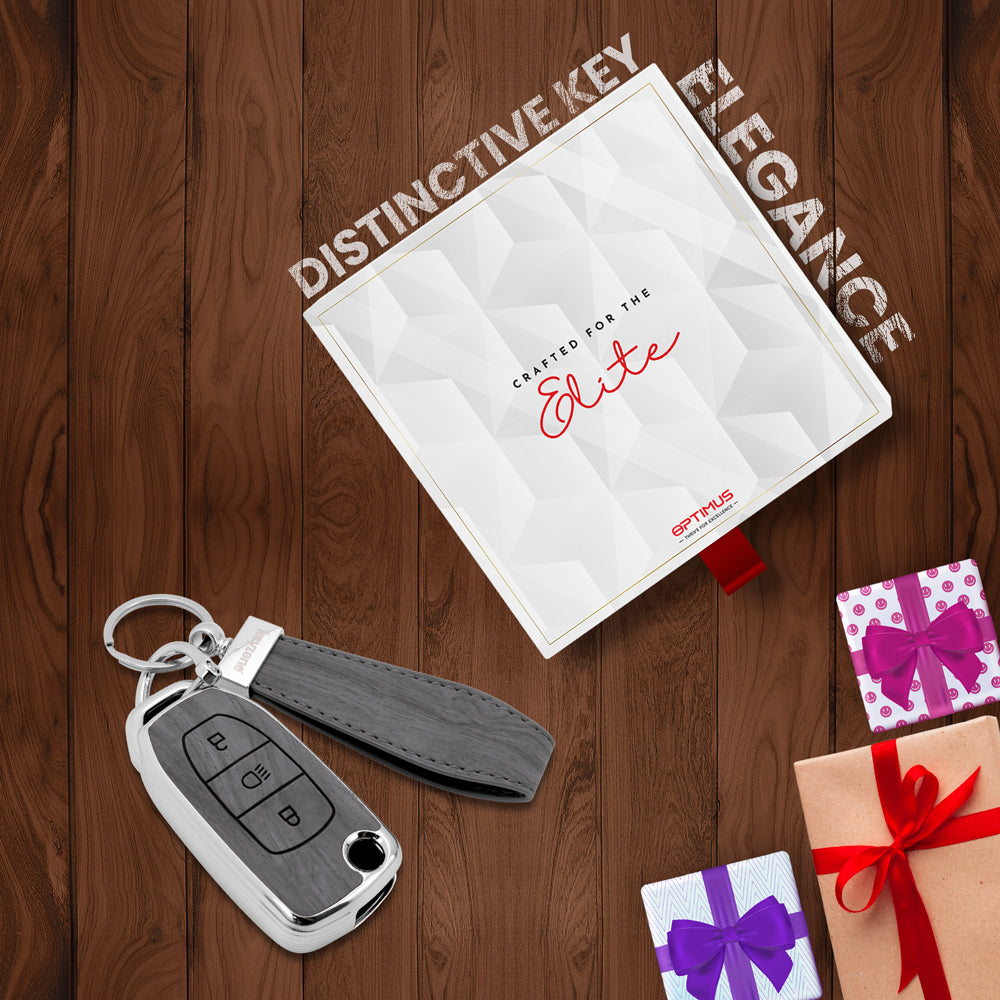 Keyzone woodgrain TPU key cover & keychain for Curvv, Nexon, Harrier, Safari, Altroz, Punch, Tiago, Tigor flip Key (WDTP29)